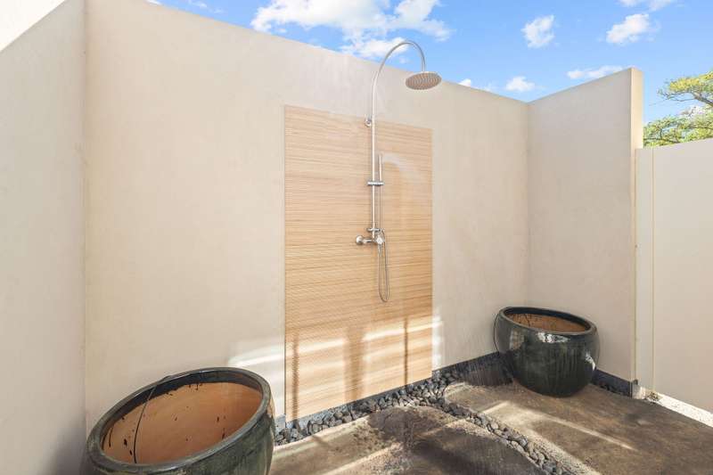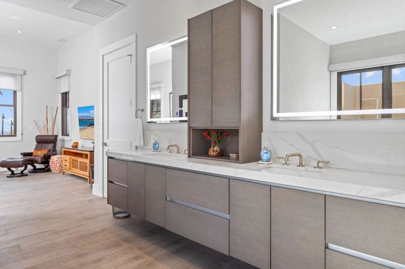 The grand primary bathroom features double sinks, oversized walk-in shower, large soaking tub and a private outdoor shower.