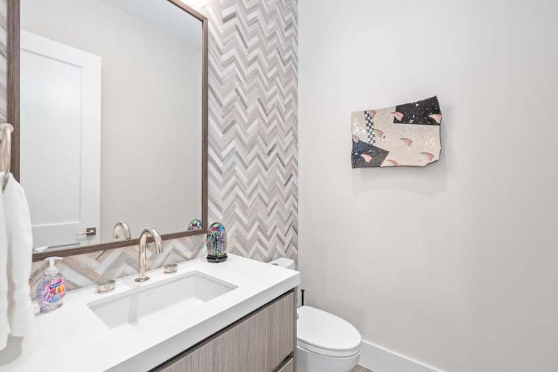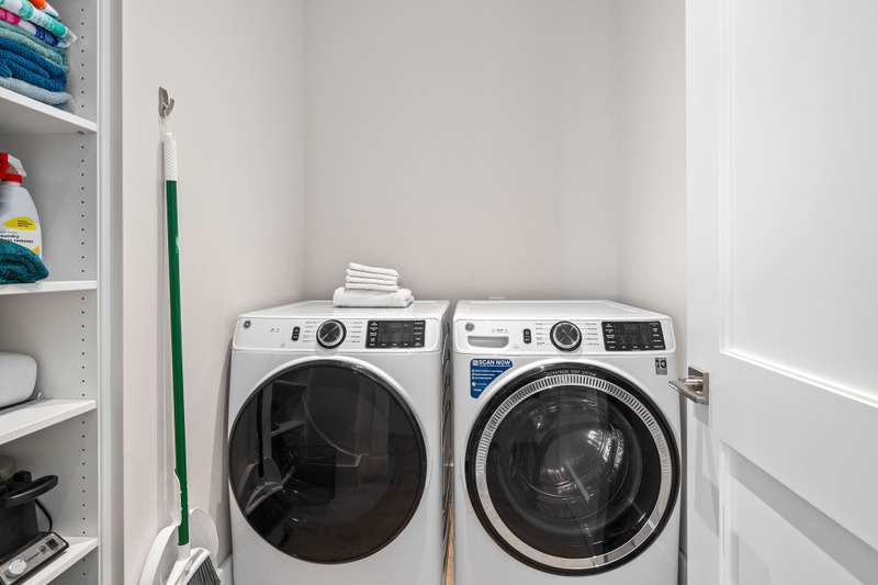 There is an additional powder room for guests and separate laundry room with full sized, side by side, washer/dryer.