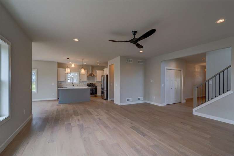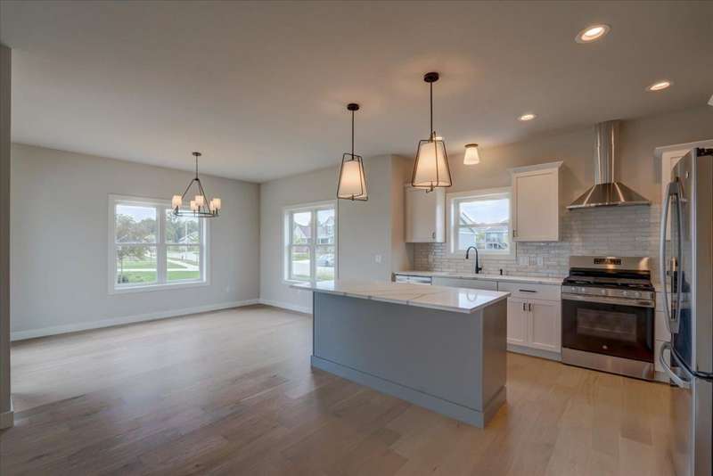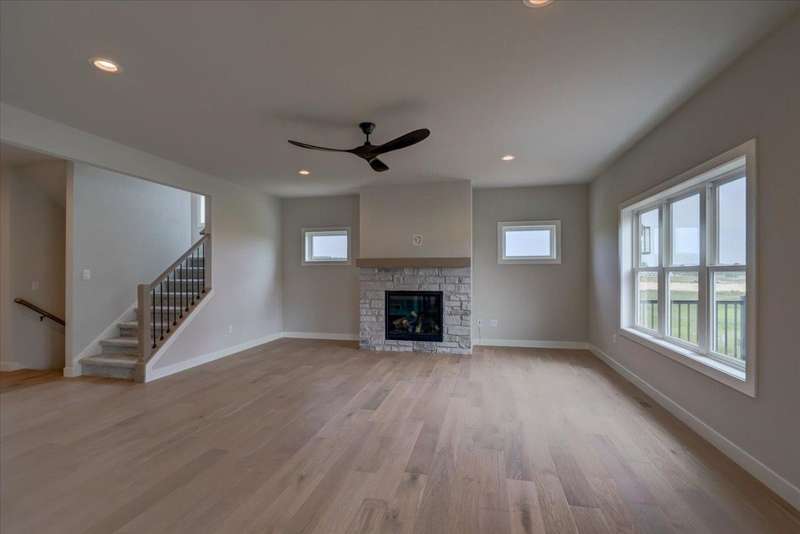 Amazing Value!! 2-story by Trademark Homes in Kettle Creek North! This 4BR, 3.5BA home sits catty-corner from the park with backyard views that will remain open once neighboring homes are complete. Main level offers a sun-filled office, open great room with gas fireplace and transom window, plus a kitchen with quartz counters, island, GE stainless appliances & walk-in pantry. Dining nook leads to composite deck. Upstairs features a loft, laundry with folding counter & primary suite with walk-in shower, double vanity & large closet. Walkout LL includes rec room, 4th BR, full bath & storage. Landscaped exterior plus smart garage, thermostat & zoned heating!
