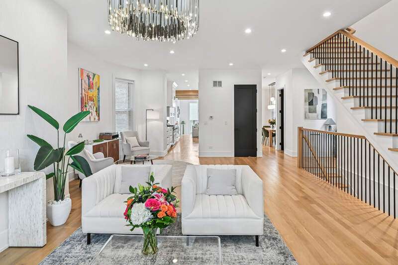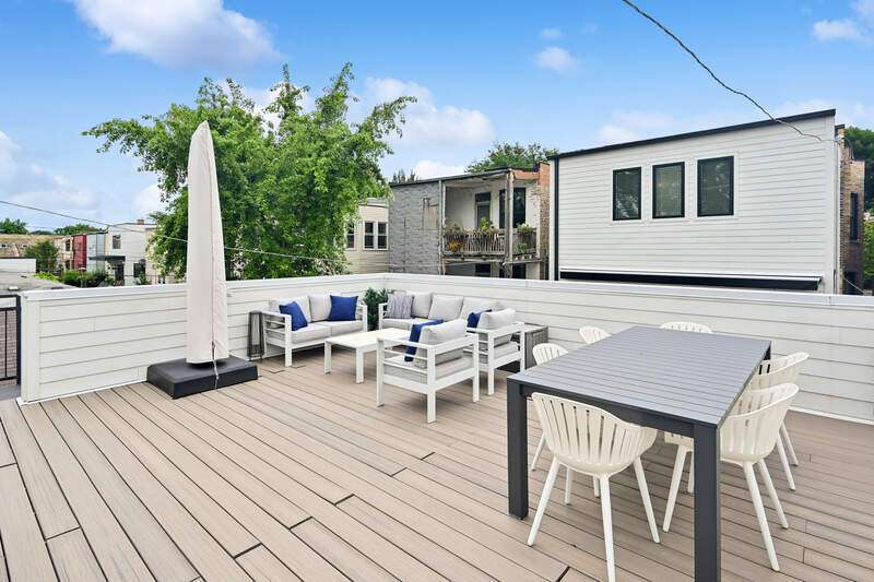 Experience Elevated Living in the Heart of Logan Square Welcome to 2708 N Albany-a beautifully designed, expansive single-family home offering over 4,200 square feet of luxurious living space in one of Chicago's most vibrant neighborhoods. With 6 bedrooms and 4.1 bathrooms, this home is ideal for growing families, multi-generational living, or anyone who loves to entertain in style. Step inside to soaring 10-foot ceilings, 8-foot solid-core doors, and white oak flooring that runs throughout the main and upper levels, creating a warm and refined atmosphere. At the heart of the home is a chef's dream kitchen featuring WiFi-enabled Thermador professional-grade appliances, an oversized 9.5-foot island with bar seating, quartz countertops, crisp white shaker cabinetry, a walk-in pantry, and a spacious eat-in dining area. The sun-filled family room seamlessly connects to the kitchen and is highlighted by exposed wood ceiling beams and a sleek, recessed gas fireplace for cozy evenings at home. A 12-foot rear addition enhances the upstairs footprint, allowing for four generous bedrooms-including a show-stopping primary suite with a spa-quality bathroom. Indulge in heated floors, dual vanities with quartz countertops, a water closet, freestanding soaking tub, and a luxurious steam shower with rain head, built-in bench, and glass enclosure. The fully finished lower level includes two additional bedrooms, a full bath, a large recreation room with a mini wet bar, a utility room, and additional storage-including hookups for a second laundry area. Out back, enjoy a private, fenced yard with a brick paver patio perfect for grilling and relaxing. A 2.5-car garage is topped with a composite rooftop deck, offering even more outdoor space for entertaining or unwinding. This home combines timeless design with modern convenience-every detail thoughtfully considered. Come see it for yourself and fall in love. Welcome home to 2708 N Albany.