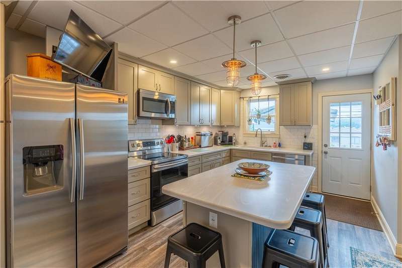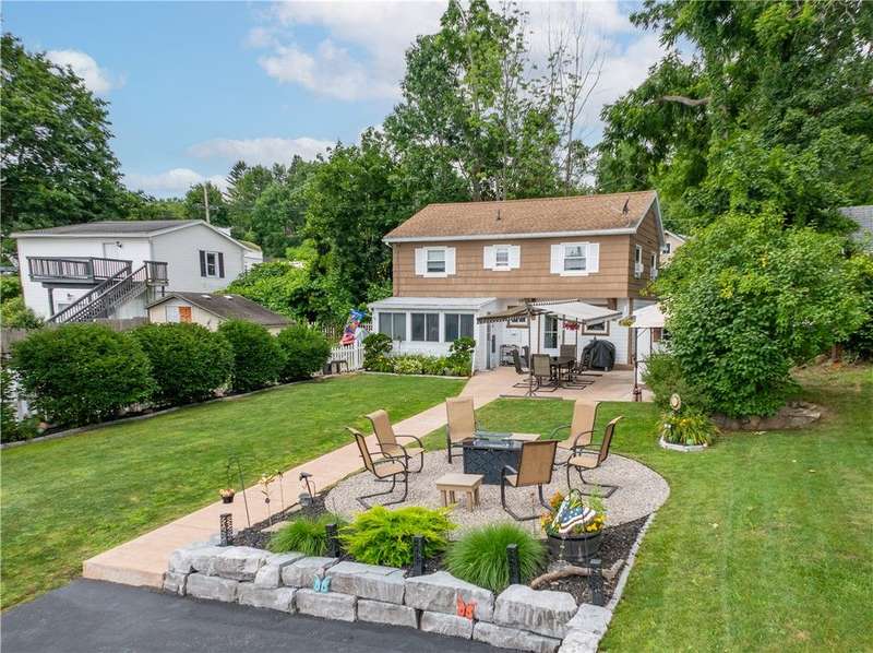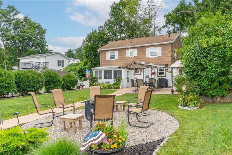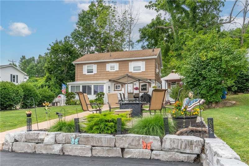 Lake views and beach access come with this 3 bedroom, 1.5 bath cottage so move right in and enjoy lake life! The home has been well maintained and has public water and sewer, storage shed, off street parking, screened porch is a great "drop zone" complete storage and additional refrigerator. Firepit area overlooking the lake! CURRENTLY Year round home, could be seasonal, YOU DECIDE! All of the work has been completed : NEW Kitchen, flooring, appliances, countertops too.Washer/dryer will remain. 2017 Mini split ! for AC2016 LEAF Filter gutter system installed.2015 Hot water tank2014 Patio 2011 Furnace 2010 Roof Move Right in! Ready to gooooooooo !
