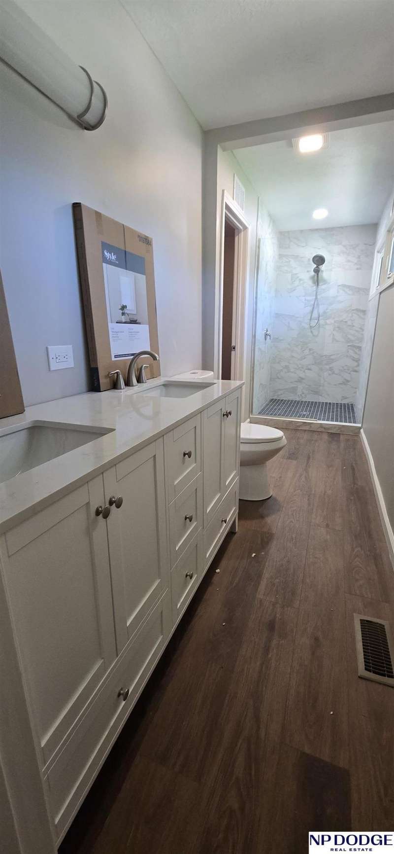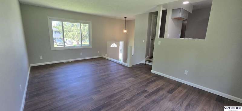 This practically new home shines with stylish 2025 updates throughout. The kitchen boasts new cabinets, countertops, sink, and lighting-perfect for cooking and entertaining. Durable LVP flooring enhances the main level, while plush new carpet adds comfort below. The spacious primary suite features a luxurious bath with dual sinks, a stunning walk-in shower, and a generous walk-in closet. The main bath is updated with a striking vanity and modern lighting. Enjoy peace of mind with new vinyl windows, exterior doors, sliding glass door, full re-plumb (2024), updated electrical, and a new water heater (2024). Fresh interior paint and new exterior paint provide excellent curb appeal. Entry railing to be installed by closing. Conveniently located near S 72nd Street, close to shopping, dining, and Immanuel Hospital!