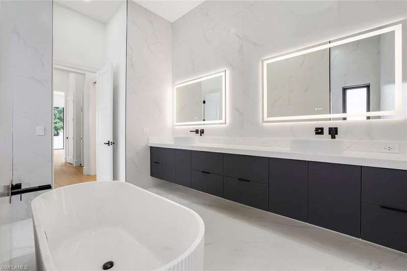 This stunning new home blends modern luxury with timeless craftsmanship in one of Naples' most sought-after neighborhoods. Designed with both style and comfort in mind, every detail has been thoughtfully selected. A sleek metal roof crowns the residence, while wide-plank wood floors flow seamlessly throughout the open-concept interior. The gourmet chef's kitchen features a large island, custom cabinetry, double ovens, and high-end finishes, making it ideal for both everyday living and entertaining. Smart dimmable lighting switches create the perfect ambiance in every room, while the elegant bathrooms are fitted with premium Toto toilets for a refined touch. Step outside to your own private retreat, complete with a fully equipped outdoor kitchen designed for al fresco dining and gatherings under the Florida sunshine. This home captures the essence of Lake Park living luxury, convenience, and coastal charm all in one.