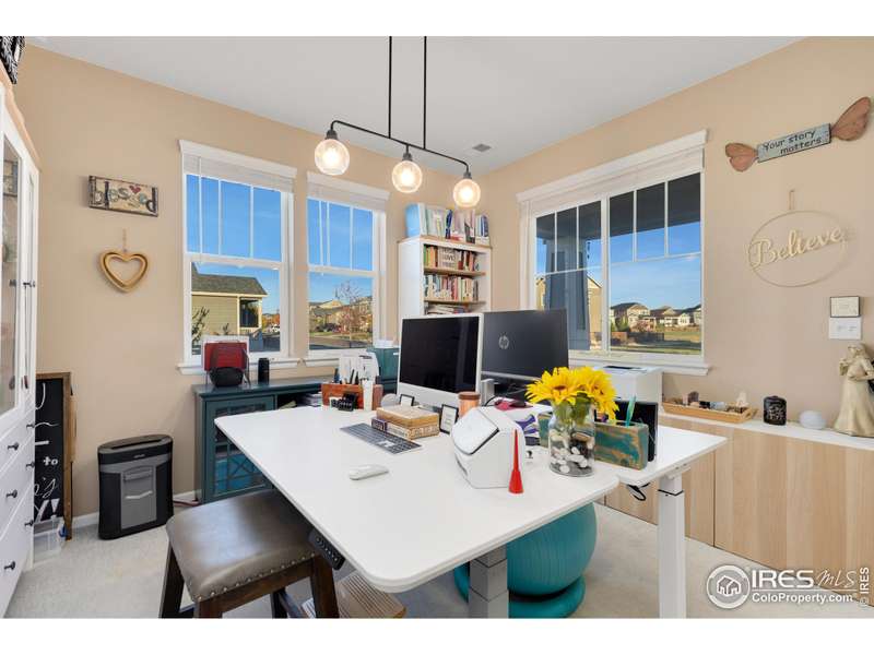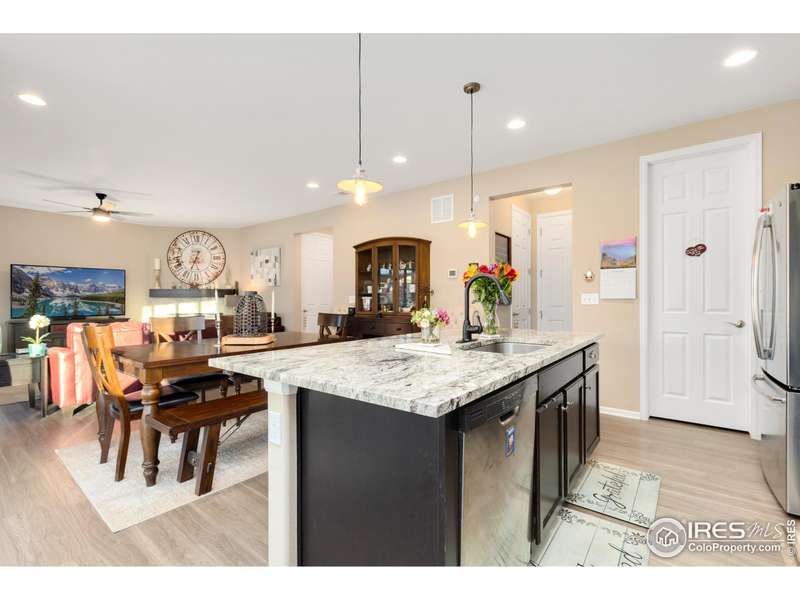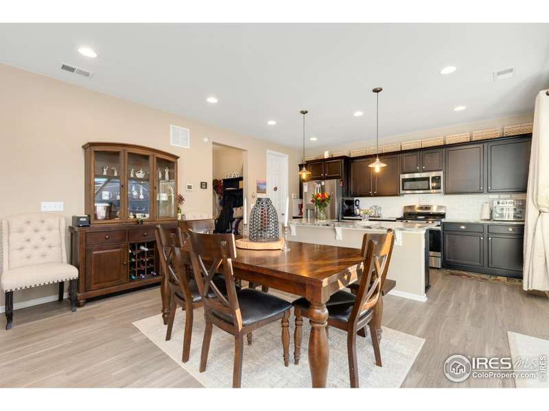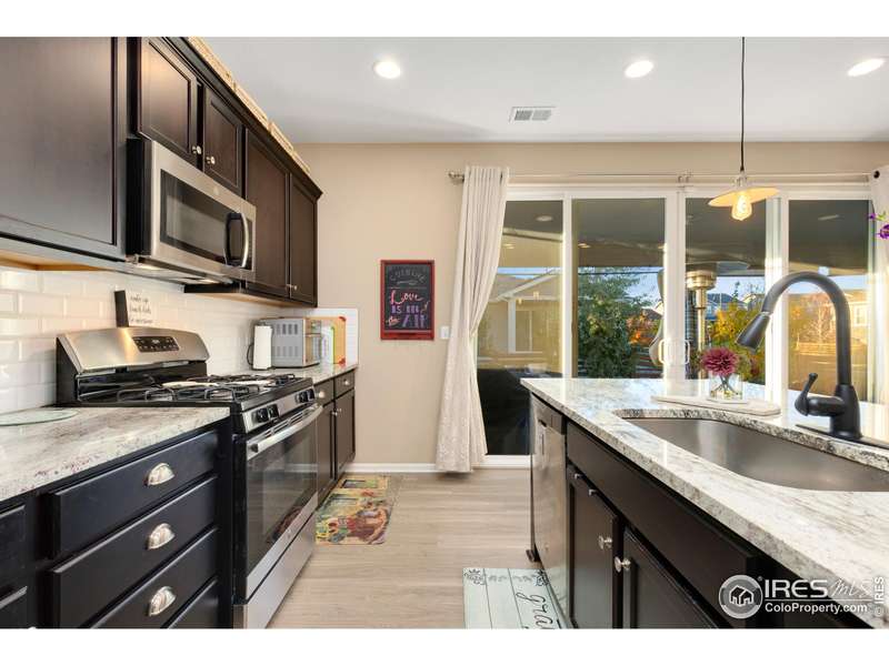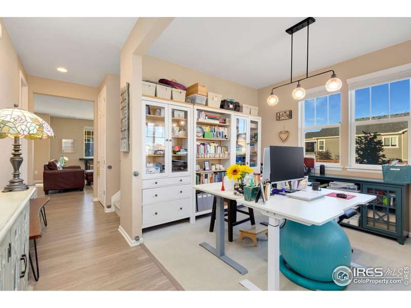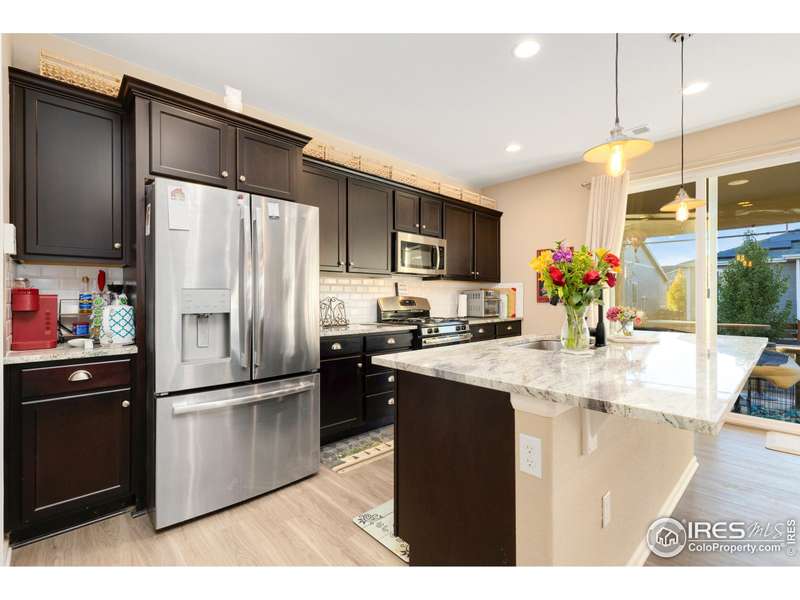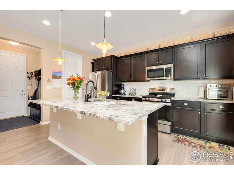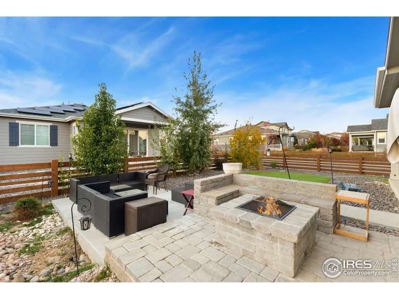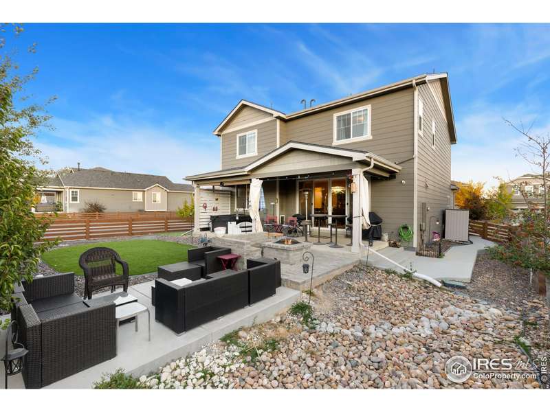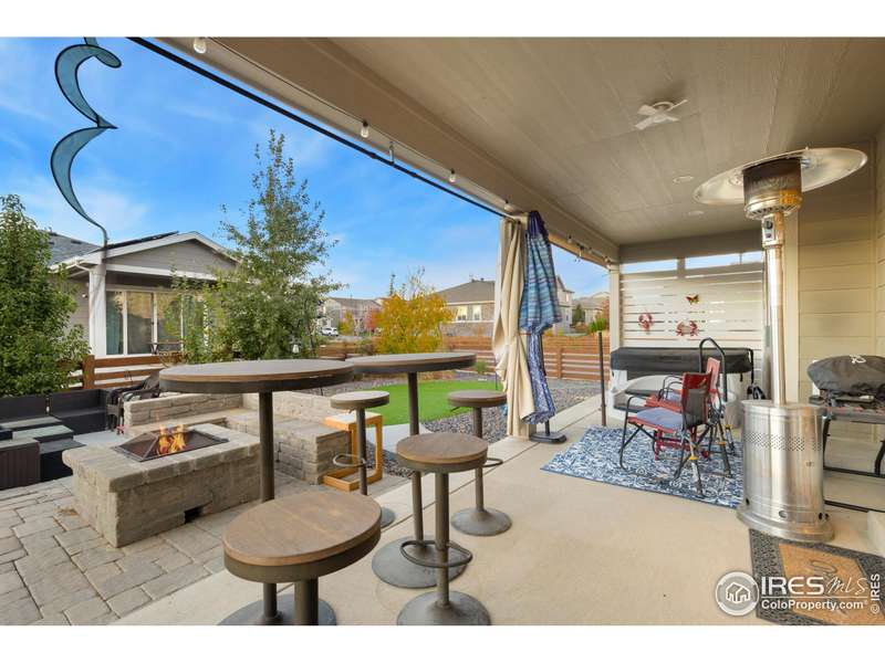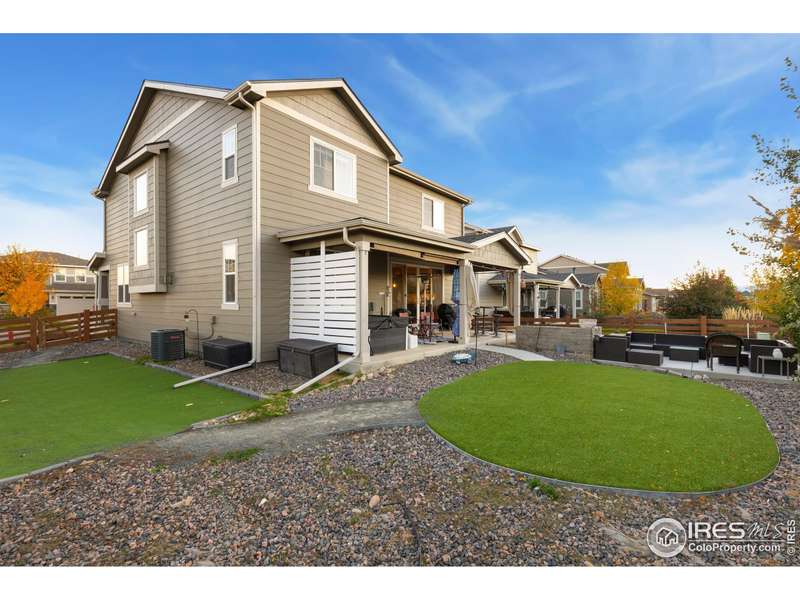 Welcome to this desirable corner lot in Colliers Hills. From the minute you exit your car you'll notice the custom mature landscaping and covered front porch. Once you enter the home you'll be stepping into luxury engineered flooring that flows throughout the main level. The front room can be your private office and/or a formal living/dining space. Be amazed by the open floor plan with vaulted ceilings opened up to family room, dining and kitchen area. With the abundance of windows streaming in you'll get the feeling the lights are always on. Enjoy cold winter days in the cozy family room that features a gas fireplace. One whole wall in the dining-in area opens up to the back living space with covered porch which features power for your own spa hot tub. The back yard will quickly become your go to space to relax and enjoy Colorado's diverse weather. Built in is a custom concrete seating area nestled around the gas fire pit. Talk about enjoying your open back yard, you will not have to maintain the astro turf making the yard always perfect. Back inside, the kitchen isle features a built-in sink that is surrounded by upgraded granite counter tops.This gives you extra seating areas to enjoy family time as well. The upgraded stainless steel appliances include a gas range/oven, refrigerator, microwave and dishwasher. Don''t miss the oversized pantry and mud room area off the garage and the 1/2 bath. The upstairs landing area could be a flex room, office or den and includes 3 bedrooms. The oversized primary bath features double sinks and quartz counters and an oversized walk-in closet. The other full bath also has double sinks for your family or guests. There is so much to love about this adorable home. Don't over look the amenities of the area including pool, workout rooms, parks, trails, shopping and Erie high school.