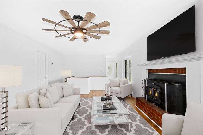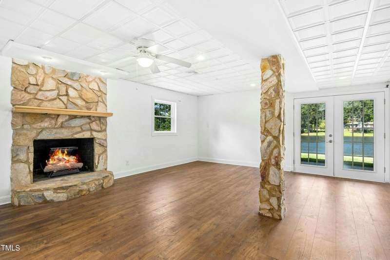 Set on a spacious lot, this well-kept 3-bedroom brick home offers two beautiful lake views and plenty of room to relax, entertain, and enjoy the outdoors. The main level features an open layout, a charming original wood furnace, and doors that open to a brand-new deck with sweeping lake views. The walk-out basement includes two bedrooms, a remodeled bathroom, and a large den with a stone-surround gas fireplace. French doors open to a patio and a big backyard, all overlooking the water. A gazebo near the lake provides a peaceful place to unwind. The lake is also great for kayaking, paddleboarding, or taking a leisurely pontoon ride. With its generous lot size, dual lake views, and inviting living spaces, this home blends comfort and nature in a truly special setting.