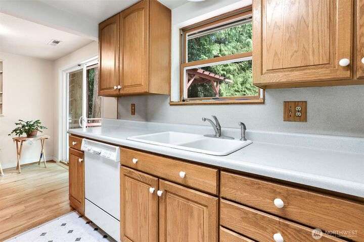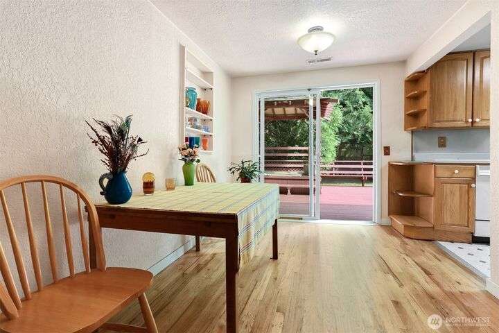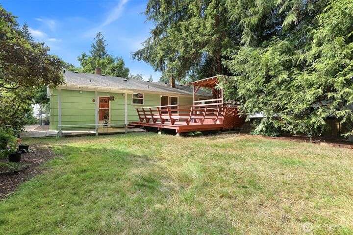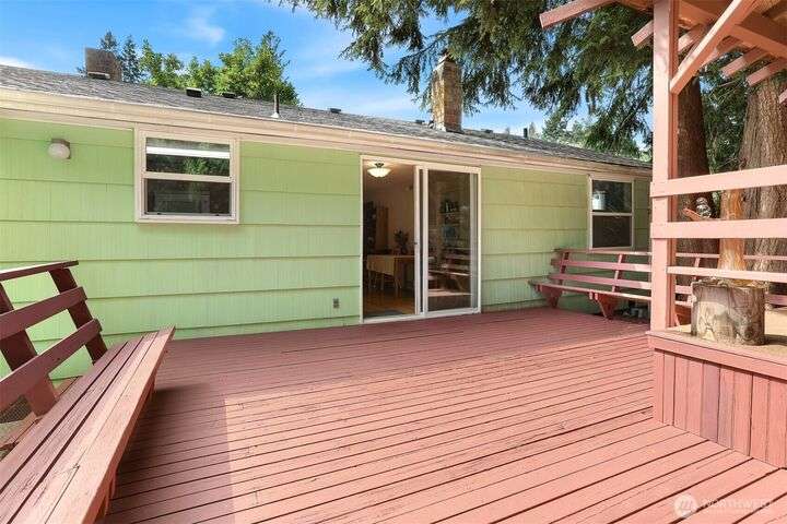 Charming Shoreline Rambler with Private Backyard Oasis! Delightful single-story home nestled in a convenient Shoreline neighborhood. Step inside to find a warm and inviting layout, hardwood floors and a nice feel. One of the home’s standout features is the private, fully-fenced backyard – perfect for gardening, pets, or simply unwinding. Enjoy your morning coffee or summer BBQs on the generous deck, ideal for outdoor living year-round. With mature landscaping and peaceful surroundings, this backyard is a true retreat. Located close to parks, Shoreline schools, and easy commuter/light rail access. Whether you're a first-time buyer, downsizing, or investing, this home offers comfort, charm, and convenience.