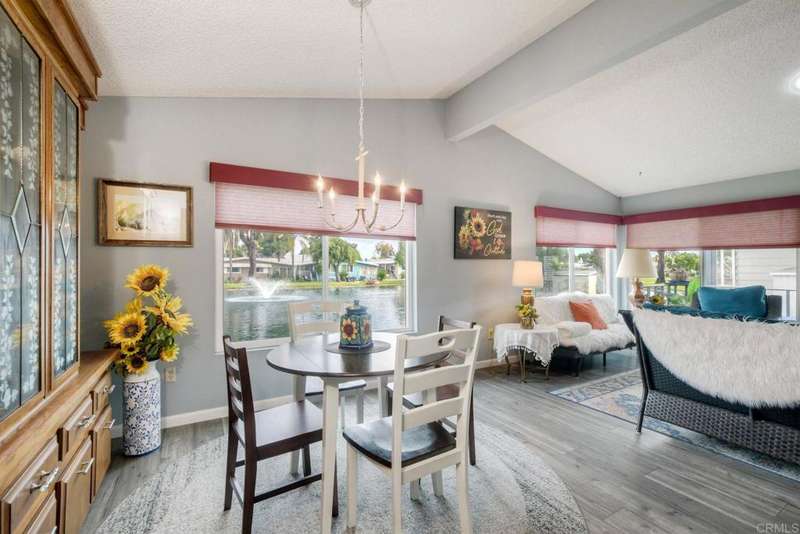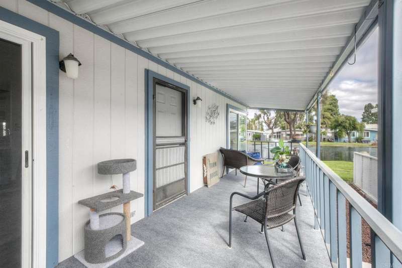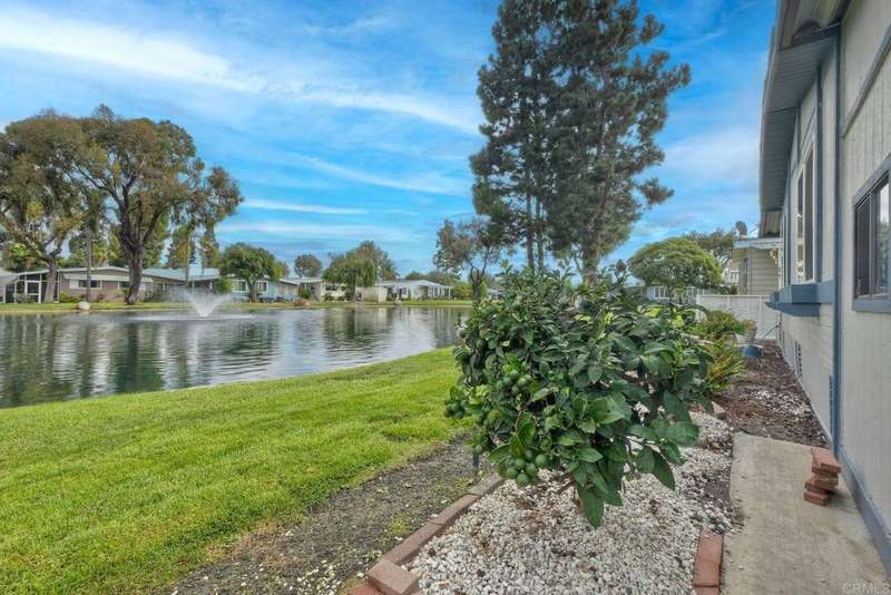 Lake front home has stunning lake and green belt view. There is a Large deck for relaxing with water view. Features an open floor plan that entertains a feeling that you are in a resort. Large picture windows. Kitchen opens to a dining room that leads to a large living space. Bathrooms have been updated and home throughout is same, with convenience and peaceful living space. Updated paint and wonderful decor thru out. One year old washer and dryer This is a must see in a senior park called Laguna Vista Mobile Home Estates where nature abounds . A gated community located close to freeway, shopping. Beach is to the west by freeway. The complex has a parklike setting with lakes thruout. Shed in Carport and pleasant sitting arrangement.