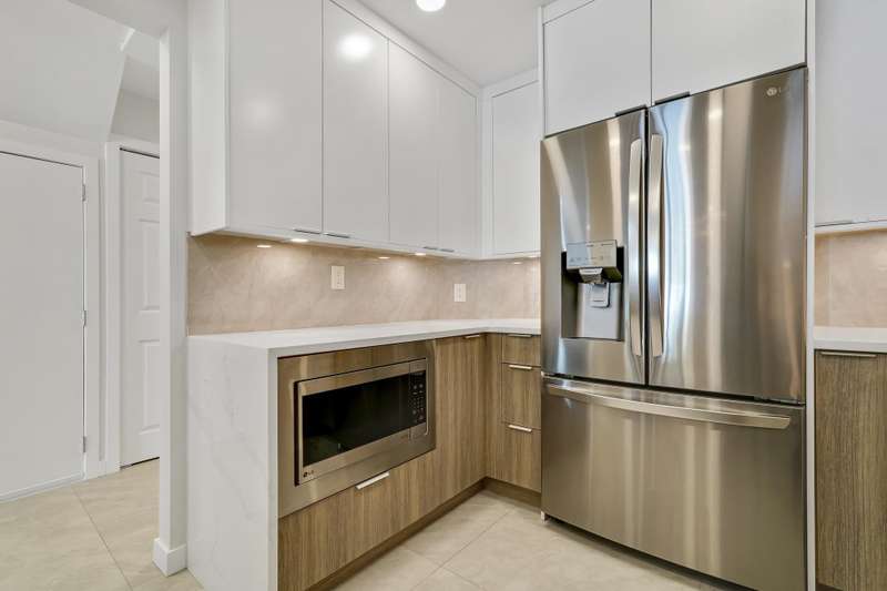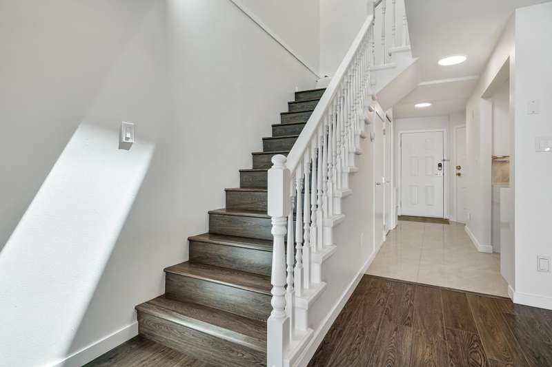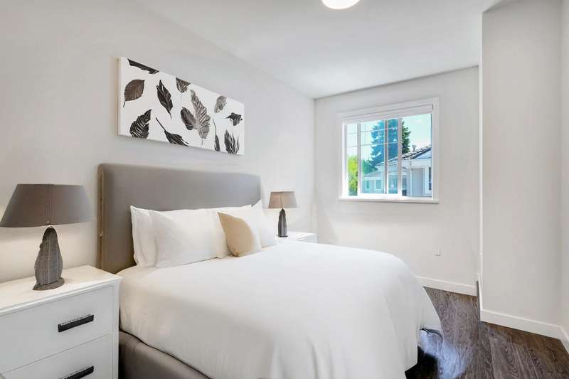Step into this modern, extensively renovated 2-storey townhome that feels like a designer showroom. Extensively updated in 2023, this nearly 1,400 sq. ft. home offers bright, open-concept living in a well managed 10-unit complex - centrally located. Highlights include a modern kitchen with quartz waterfall countertops & premium appliances, stylishly renovated bathrooms, radiant in-floor heating, updated skylights, Smart home upgrades, cozy gas fireplace & a private, north-facing backyard. Upstairs features 3 spacious bedrooms and 2.5 bathrooms, perfect for families or working professionals. Comes with 2 parking spots and unbeatable walkability to Richmond Centre, Minoru Park, the Canada Line, top-rated schools, and recreation. A must see! Some photos have been virtually staged.