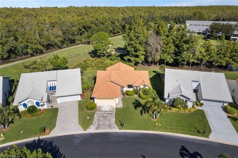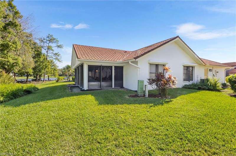 Welcome to your dream home with stunning GOLF & NATURE VIEWS in the heart of a serene BUNDLED GOLF community. The kitchen is perfect for whipping up tasty meals with gorgeous GRANITE COUNTERS, SOFT-CLOSE WOOD cabinets, STAINLESS-STEEL appliances, and a large basin sink. NO CARPET! This single-family "condo home" offers 2 bedrooms, 2 bathrooms, an UNDER-AIR LANAI, and a 2-CAR GARAGE, providing ample space for you and your loved ones. The VAULTED CEILINGS make the 1700+sqft SPLIT FLOOR PLAN feel even larger. The SPACIOUS PRIMARY suite includes a walk-in closet, walk-in shower, and dual vanities. Storm SHUTTERS ALL AROUND, and the METAL ROOF that the Association covers gives you peace of mind. Take a dip in the pool at your nearby cabana or enjoy a stroll around the QUIET LOOP. Want to get out and have some fun? This ACTIVE, walkable/bikeable community is pet-friendly, rental-friendly, and highly sought-after! Enjoy a round of golf, pool/spa, tennis, bocce, pickleball, restaurant/bar, social events, and more; or head out to Daniel's Pkway for ample shopping, dining, and entertainment options, as well as quick and easy access to RSW International Airport, SWFL's white-sand beaches, or the Twins' or REd Sox's spring traning stadiums. Don't miss out on this incredible opportunity to make this rated "BEST VALUE BUY" your new getaway, and begin living the Florida life today!