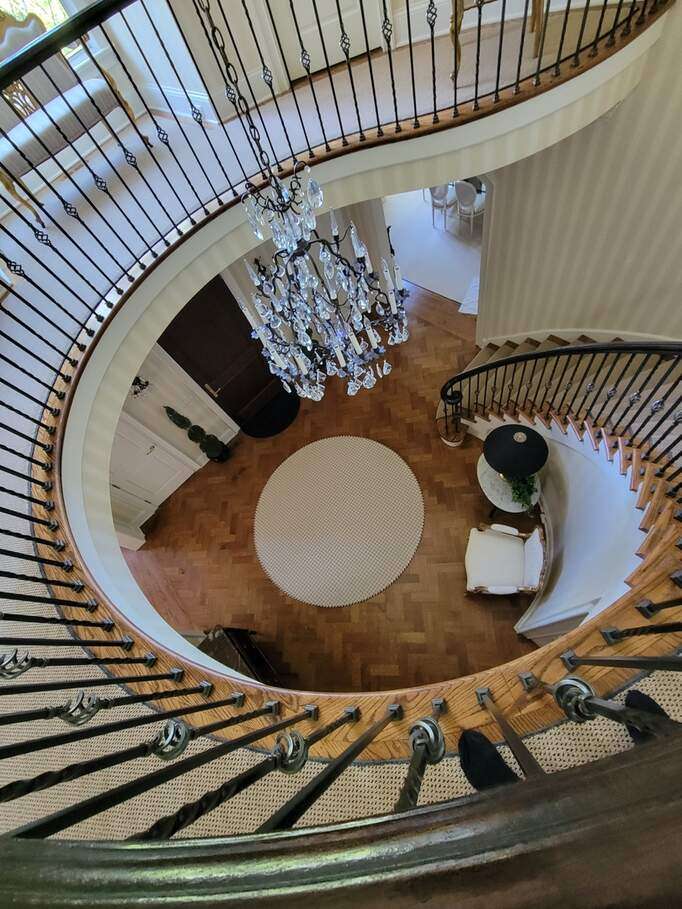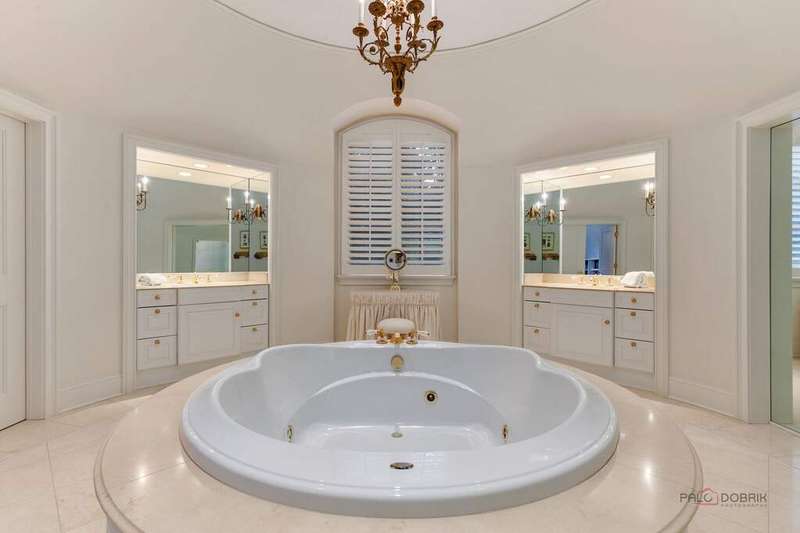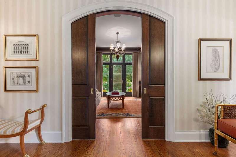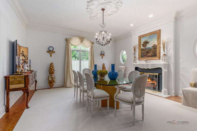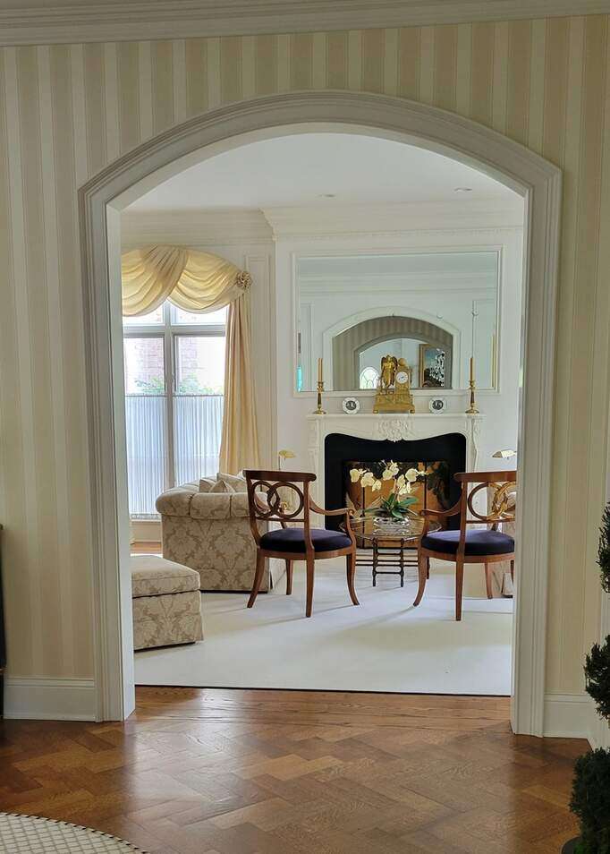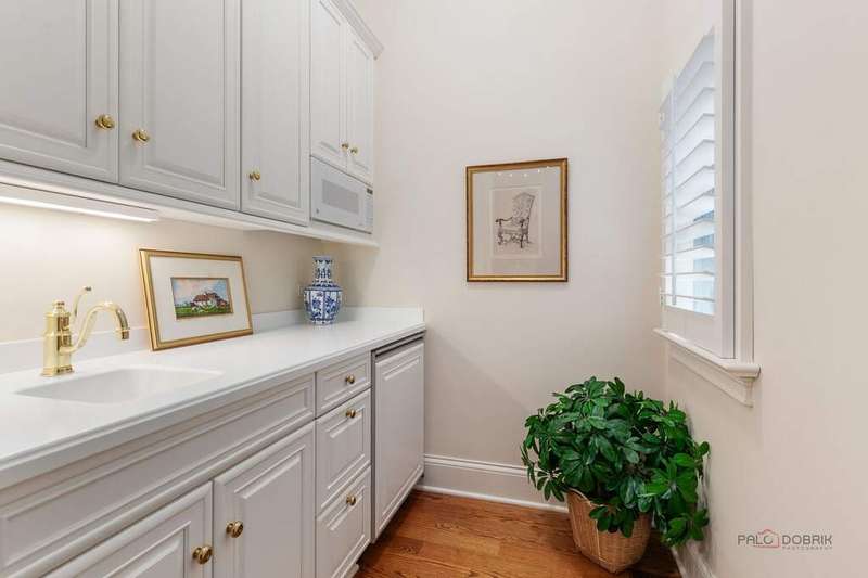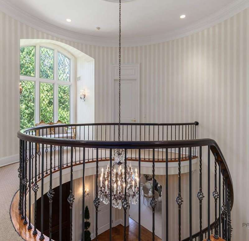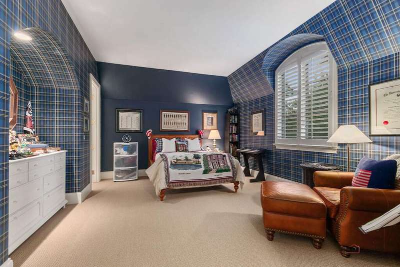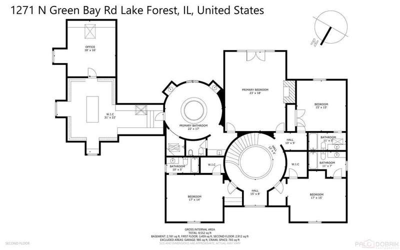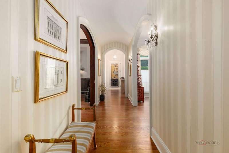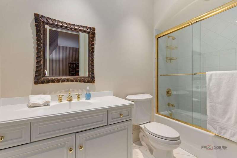 Tucked away on 1.4 pristine acres along a private lane just minutes from downtown Lake Forest, this stately French Normandy-style residence exudes timeless sophistication and exceptional craftsmanship. Custom-built in 1999 by Gene Martin, the home combines thoughtful design, solid construction, and luxurious finishes across more than 7,500 square feet of living space. The lime-washed brick facade welcomes you into a grand, two-story foyer with a sweeping staircase and herringbone oak hardwood floors. Flanking the entry, the formal living and dining rooms showcase exquisite millwork, floor-to-ceiling windows, Scalamandre window treatments, and twin gas fireplaces, creating an elegant symmetry ideal for entertaining. The de Giulio-designed kitchen is a chef's dream, featuring herringbone oak hardwood flooring, custom pine cabinetry, granite countertops, premium appliances (Viking, Sub-Zero, and Miele), a large island, and a sunlit breakfast area. Step down into the inviting family room, highlighted by a coffered ceiling, bay windows, and a stately, limestone fireplace. A handsome library with walnut built-in shelving w/ cabinets and access to a private patio provides an ideal home office. The main level also includes a spacious guest suite (or potential second primary bedroom) with a 14-foot tray ceiling, morning kitchen, and luxurious marble bath. A large, screened porch with a knotty pine, bead board ceiling and accessible via French doors from both the kitchen and family room, connects seamlessly to the bluestone patio, while the mudroom/laundry room leads to a heated 4-car garage. Upstairs, the 2nd floor landing features a wall of leaded glass panels that floods the space with light while facilitating views of the front of the property. The primary suite impresses with a 12-foot vaulted ceiling, a private balcony overlooking the grounds, a morning kitchen, an expansive walk-in closet with island, and a bonus room that can be used as a 2nd office or exercise space. The spa-like primary bath features dual vanities, a circular jetted tub, Sheryl Wagner faucetry, and a large walk-in shower. Three additional, sizable en suite bedrooms complete the second floor. The lower level offers 1,500 sq ft of finished living space and features a 2nd family room with fireplace, a game room, a full bathroom, and abundant storage. Outside, the professionally landscaped grounds feature mature trees, flowering gardens, a circular driveway, a slate roof, a sprinkler system, and multiple bluestone patios for outdoor entertaining. Perfectly located close to downtown Lake Forest, the Metra, shopping, dining, Lake Michigan, and major highways, this remarkable home blends timeless French elegance with modern comfort and convenience.