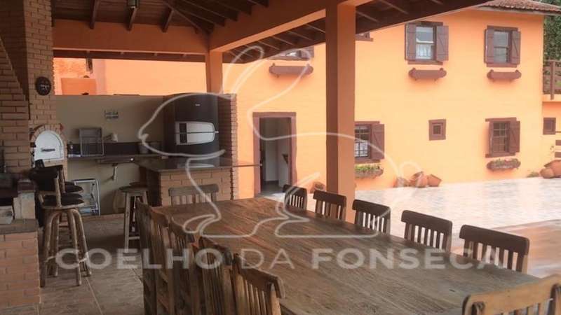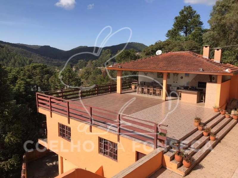 Casa em estilo toscano rústico em rua sem saída, toda gradeada, entrada com portão eletrônico que abre com controle remoto, contendo área gourmet coberta com churrasqueira, forno de pizza, fogão a lenha e mesa com 12 lugares, aberta para um espaçoso deck com vista deslumbrante para o verde e as montanhas do bairro da Vila Inglesa. A residência possui living para 03 ambientes com lareira, sala de jantar integrada com a cozinha aberta americana, 09 dormitórios e 07 banheiros, assim distribuídos: na casa principal 05 dormitórios sendo 02 suítes, 01 suíte americana com 02 quartos e mais 01 dormitório ou escritório; no andar abaixo do deck, um apartamento com 04 dormitórios e 02 banheiros, e para atender o espaço gourmet mais 02 banheiros na área externa; a área para garagem comporta em torno de 08 veículos; a propriedade ainda possui casa para caseiros com entrada e garagem independentes pela rua debaixo.
