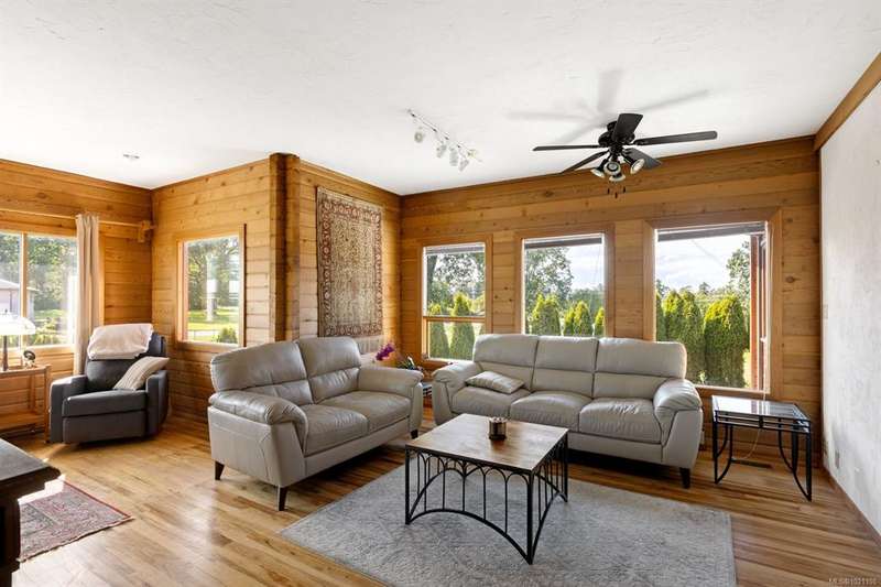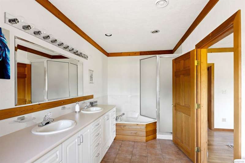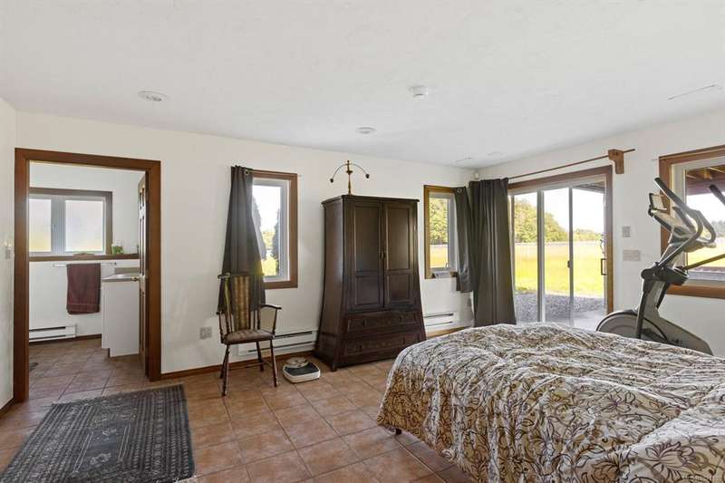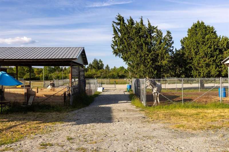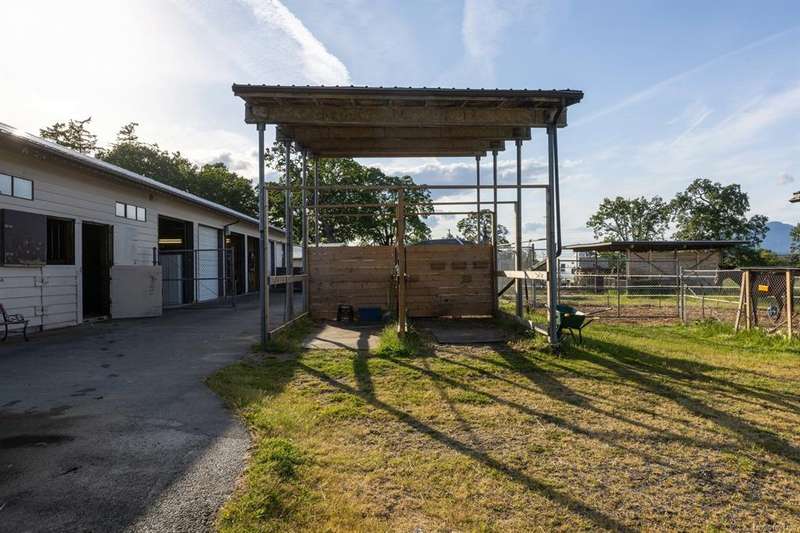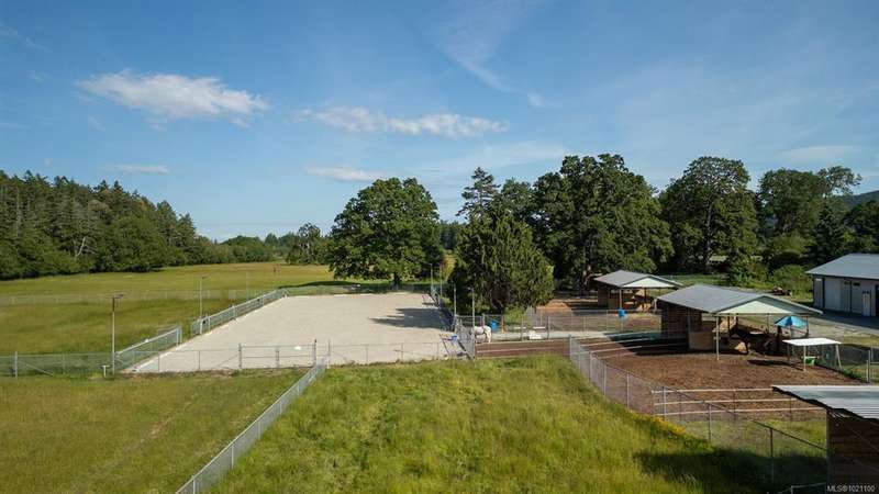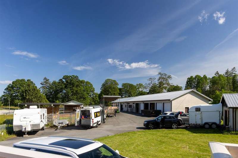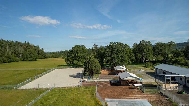 Sprawling across 25.92 acres of flat, private, and usable farmland, this ocean-view North Saanich estate offers an exceptional opportunity. Set within the ALR, the acreage—previously certified organic—provides endless potential for farming, equestrian use, or multi-generational living. The main Pan-Abode style home features a primary bedroom with ensuite, two additional bedrooms, a bright kitchen, and a spacious living room. The second 2,100 sq.ft. residence includes 4 bedrooms, 2 bathrooms, and recent updates. Equestrian facilities include insulated stalls, a tack room, and an illuminated riding arena resurfaced in 2023 with LED lighting, excellent drainage, and legal dressage size. A heated industrial outbuilding with nine garage doors and multiple workshops is ideal for vehicles or equipment. Minutes to Deep Cove, Sidney, BC Ferries, and the airport.