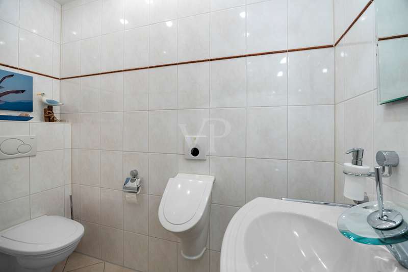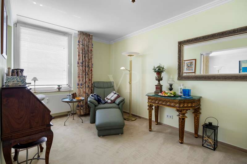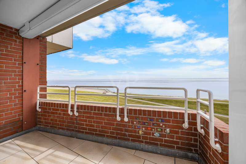 Welcome to one of the most sought-after locations on the North Sea coast: this unique condominium is located directly on the south beach of Wilhelmshaven and offers an unobstructed view of the sea - as far as the eye can see. Situated on the 5th floor of a well-kept residential building from 1980, which of course has an elevator, you can enjoy comfortable and senior-friendly living within walking distance of the promenade. Particularly pleasant: no noise from the elevator can be heard from the apartment - so your peace and quiet is always guaranteed. The approx. 90.65 m² living space offers a living ambience that impresses with its location, view and furnishings in equal measure. The apartment has three spacious rooms, including a bright, open-plan living and dining area with direct access to the loggia, which invites you to linger with a view of the North Sea. The electric awning on the balcony, which can be conveniently controlled from inside, provides additional comfort - ideal for protecting yourself from the sun or wind when needed. From breakfast as the sun rises to an evening glass of wine with a view of the water, you will experience every day here as if you were on vacation. A separate bedroom, a well-kept shower room, a guest WC and a timeless kitchen stylishly round off the space on offer. The kitchen also impresses with well thought-out details: there is a practical foot control under the sink - a light step is all it takes for the waste garbage can to slide out. The modern oven is a multifunctional appliance with an integrated microwave and infrared grill that meets the highest standards of convenience and functionality. The entire living ambience is complemented by smart technology: the heating can be conveniently controlled remotely via smartphone, and almost all permanently installed light sources in the home are dimmable - for individually adjustable lighting moods at any time of day. The home itself is equipped with an integrated waste disposal system - another convenience factor that makes everyday life easier. The apartment was only occasionally occupied by the owner himself as a second home and is in a very well-kept condition. Particularly noteworthy is the fact that the apartment is being sold including kitchen and furnishings - moving in and feeling at home has rarely been so easy. The offer is complemented by its own cellar room, which offers practical storage space. In addition, the apartment has its own parking space on the parking deck, which is included in the purchase price and is therefore also being acquired - a further advantage in this exclusive location. The monthly house fee is €447, which includes an allocation to reserves of €198.89 - a sign of the solid and forward-looking management of the residential complex. Whether as an attractive investment with excellent rental potential or as a private retreat directly on the Jade Bay, this property is ideal for customers looking for something special. The direct location on the waterfront, the proximity to the promenade, cafés, cultural offerings and the maritime flair of the city make this property a real rarity on the Wilhelmshaven real estate market. Be inspired by this unique opportunity and secure yourself a piece of the North Sea coast in the first row. Arrange a viewing appointment today - we look forward to presenting this special apartment to you in person.