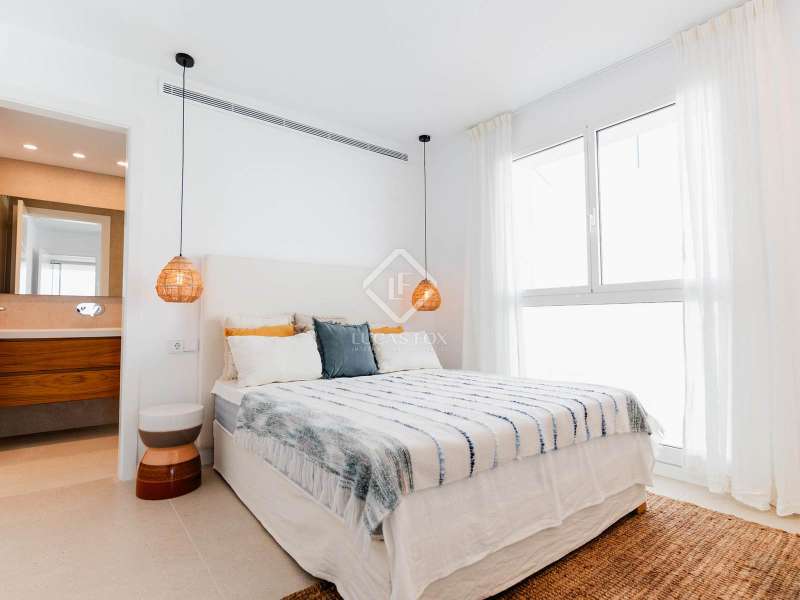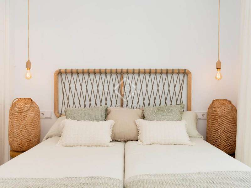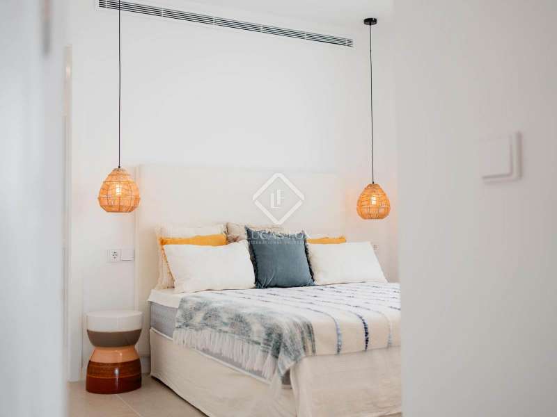 This duplex penthouse is part of Arenal Beach, a new build with a privileged location, very close to the beach and overlooking the sea, on the fantastic island of Menorca, with its enviable climate. All this without sacrificing access to all the necessary daily amenities . This is a gated community with various security measures for the peace of mind of its residents. It will also offer a wide range of community amenities and facilities. These include a reception area, a spa with a jacuzzi, sauna, and cold baths, a fully equipped gym, and a swimming pool with a beach area, a chill-out area , and a children's play area. The apartment benefits from a modern, elegant, and minimalist design with open spaces and white tones, as well as large windows that allow in abundant natural light and offer excellent sea views. The property features a large living-dining room with an open-plan kitchen and access to a huge, partially covered terrace with a dining room and chill-out area, perfect for hosting meetings, entertaining, or simply relaxing while enjoying Menorca's magnificent climate. The night area has a total of two bedrooms: the main bedroom with its private bathroom and a double bedroom . The property is completed with another bathroom to serve the remaining rooms. On the upper floor , there is a huge open terrace with a solarium area and a private pool. Among its features, we can highlight the Technal aluminum exterior carpentry with thermal break and double glazing, the home automation system, the aerothermics system for domestic hot water production, and the ducted air conditioning with heat pump. The kitchen and bathrooms are fully equipped. The kitchen includes top-of-the-line appliances from Bosch, Neff, and similar appliances, along with a Neolith countertop, while the bathrooms feature Porcelanosa fixtures. Contact us for more information.