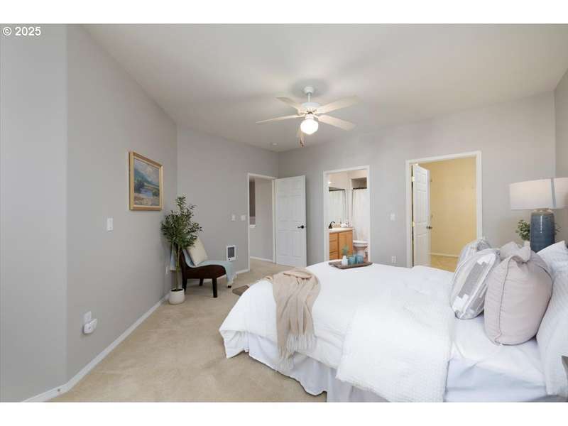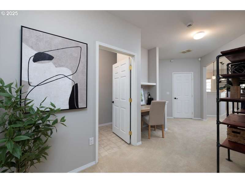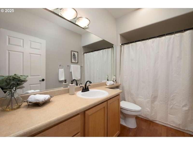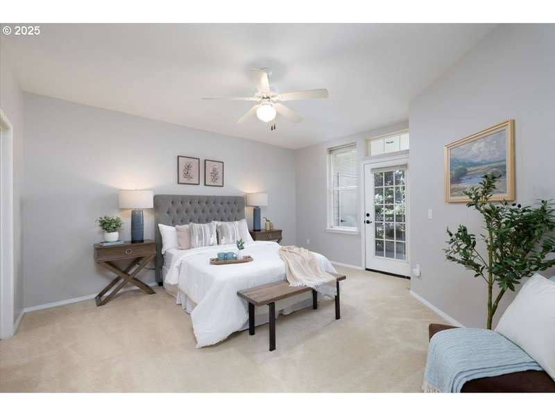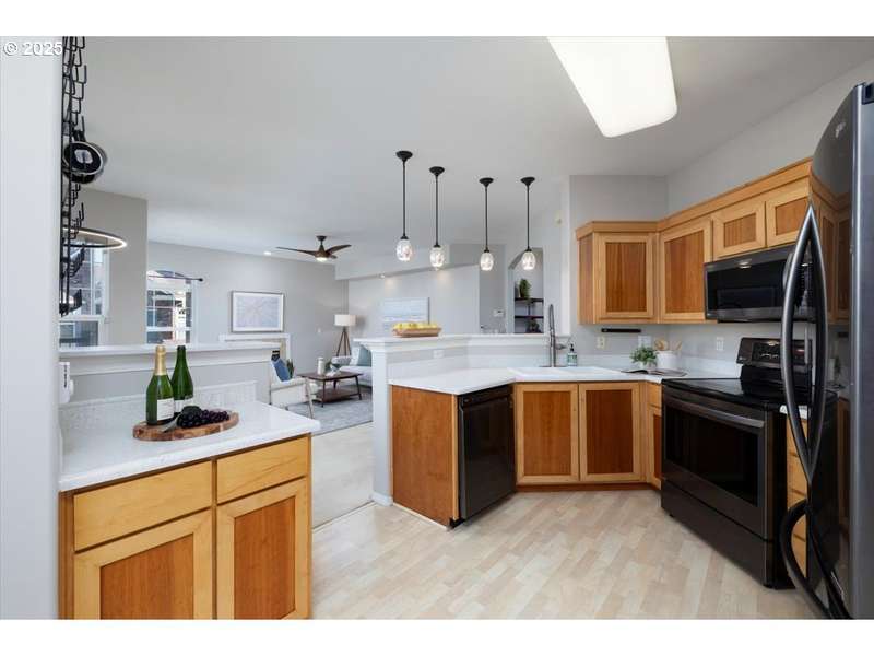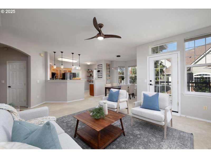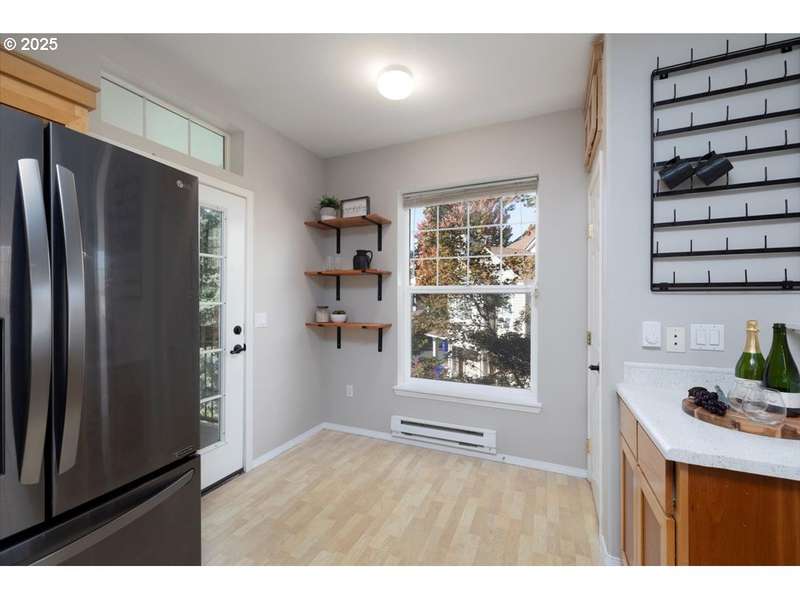 Welcome to highly sought-after Orenco Station! This gorgeous corner-unit condo offers 2 bedrooms, 2 bathrooms, and an oversized attached 2-car garage (side by side) with an EV charger. Freshly painted and move-in ready, the home features a bright and inviting open floor plan. The living room includes a cozy wood-burning fireplace and deck access, while the spacious bayed dining area flows seamlessly into the kitchen—complete with granite bar seating, a pantry, nook, and newer stainless steel appliances (refrigerator included). The primary suite boasts a large walk-in closet and private deck, and you’ll appreciate the additional office space with built-in desk and shelving. A generous laundry and storage room (washer and dryer included) adds convenience. South-facing windows flood the home with natural light, while a newer mini-split heat pump ensures comfort year-round. HOA covers water and sewer. Just outside your door, enjoy the vibrant Orenco Station neighborhood with New Seasons Market, restaurants, cafes, and MAX Light Rail all within easy reach.