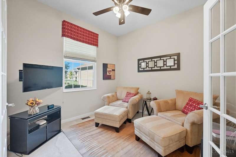 Welcome to the Landing at Oakwood Lakes! This low-maintenance condo offers over 2000 sq ft of finished living space. Large primary bedroom with two walk in closets, a living room and study- everything you need on one level! Entertain downstairs with a finished walk-out basement with a wet bar. The lower level also includes a second full bedroom and bath, and a bonus room with a delightful walk-in custom closet ideal for guests, workout space, or a private office. Enjoy quiet pond views and the benefits of a well-kept community with included landscaping, snow removal, and exterior maintenance. Enjoy access to a clubhouse and swimming pool. You're just a short distance to Dorothy Lane Market and the brand-new entertainment area The District. Conveniently located near I-71 for an easy commute. Don't miss this opportunity to enjoy easy living in Mason.