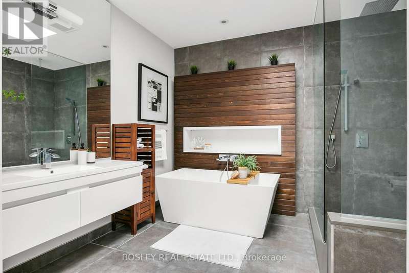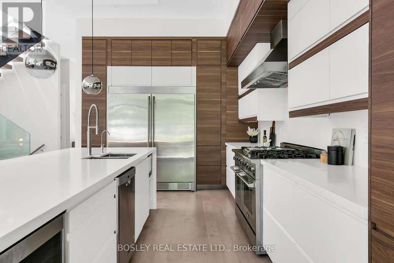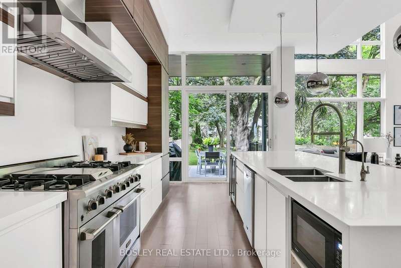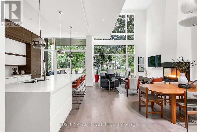 Where substance meets style, and opportunity stretches as far as the lot line.This striking modern residence on Broadview isn't shy about making a statement. The address comes with instant access to the city and interiors that feel miles away from it. With nearly 4500 square feet total of modern splendour. Soaring ceilings, and walls of glass. Natural cascades of luminance. Sunlight pours through skylights and floor-to-ceiling windows, while custom millwork and sleek finishes give the interiors a refined edge. The main floor revolves around an open great room anchored by a chefs kitchen with a twelve-foot island and professional-grade range the kind of space where family breakfasts, dinner parties, and late-night conversations naturally unfold. Upstairs, three bedrooms each have their own ensuite (because sharing is overrated), including a primary suite with a walk-through dressing room, spa bath, and balcony. Downstairs, a full walkout lower level expands the homes possibilities with a massive second kitchen, additional bedrooms, heated floors throughout, and even a soundproof studio or gym. Step outside and the lots depth reveals itself: nearly 170 feet of landscaped privacy, mature trees, and room to dream. And those dreams? Already approved. Plans for a 2,000SF Garden Suite with pool and cabana are in place; as well as a fully severed secondary lot on Hillside Drive with approvals for a 3,300SF detached home [visit the site for renderings, video, plans and details]. Keep it all for yourself, or lean into the development potential - either way, you're winning. Broadview gives you quick access to transit, the Danforth, and downtown, while inside you'll find quiet, comfort, and a home built to last. Big on space, bold on design, and generous with options for the future. This is more than a house. It's a whole playbook of possibilities. Download to Buyer Book for plans, details and so much more. Open houses this weekend 12 - 2pm. Come one! Come all! (id:7434)