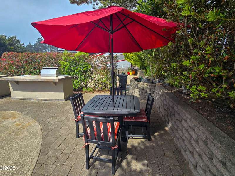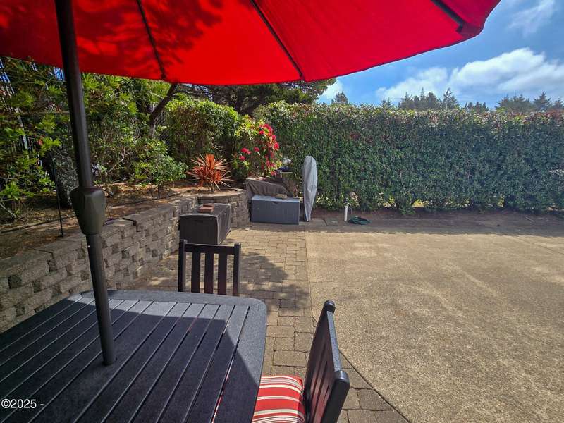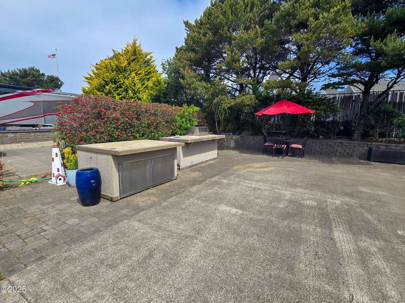 Come enjoy the Oregon Coast at this gorgeous oceanfront resort! This lot is tucked against the north side of the property, and is one of the most wind protected areas of the sprawling Pacific Shores Motorcoach Resort. Offering an expanded patio, built in kitchen and storage, along with BBQ and a pond feature that needs a little love to restore it to its former peaceful glory, this space is just waiting for you to call it home. Pacific Shores offers indoor and outdoor pools and spas, saunas, owners-only lounge, kitchen, and gym, plus two laundry rooms. Additionally, you have access to walking trails, pickleball courts, and private beach access to miles of sandy shores.