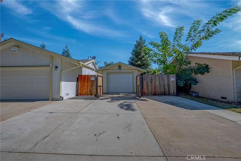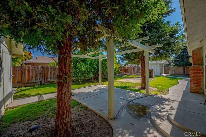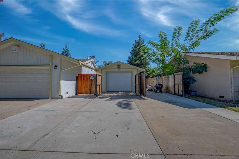 Beautifully Renovated Corner-Lot Gem in Merced with multiple garages!!! Welcome home to this stunningly updated home on a desirable large corner lot, where modern comfort meets classic charm. Step through the double-door entry and you'll be greeted by a beautiful living room fireplace, the perfect centerpiece for cozy evenings. The well-equipped kitchen sits just adjacent-completely renovated with granite countertops, sleek cabinetry, farmhouse sink, updated appliances and a pantry. Throughout the home, you'll notice thoughtful upgrades including crown molding, a whole-house fan, and tons of built in storage options. The brand-new carpet (installed October '25) is a great compliment to the stylish mix of bamboo and slate flooring. The bedrooms are all generously sized and both bathrooms have been tastefully remodeled, offering a fresh, modern look. Outside, enjoy the convenience of an attached two-car garage, a heavy duty double gate opening to the drive-through additional garage which leads to the workshop out back-ideal for projects, storage, or MORE parking. The property is an entertainer's (or Car-lovers) dream, featuring a large covered patio, extra storage shed, and ample space for a future pool. Don't miss your chance to call it home!