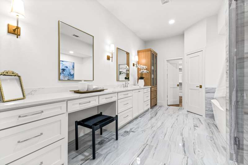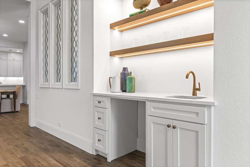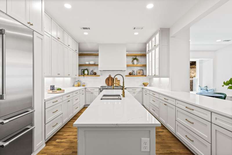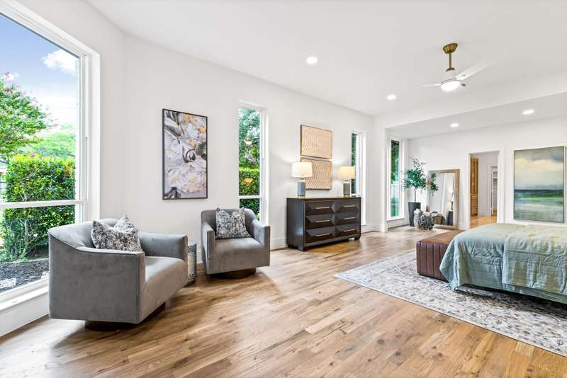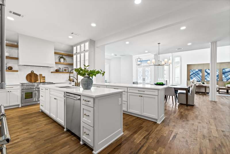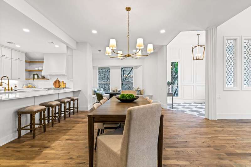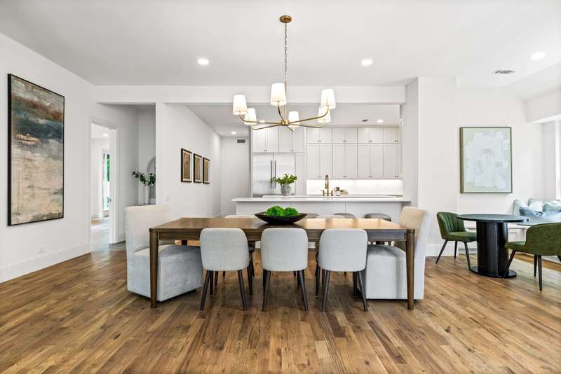 Tucked inside the prestigious, guard-gated Glen Lakes community, this impeccably and completely renovated 4,482 sq ft residence offers refined living in one of Dallas most coveted enclavesjust moments from Central Expressway, NorthPark Center, and the citys premier dining and shopping destinations.Step inside to soaring 20-foot ceilings and a dramatic, light-filled living area anchored by one of two beautifully appointed fireplaces. Designed for entertaining, the home features two built-in wet bars and a stunning dual-island kitchen with custom cabinetry, designer lighting, and sophisticated wallpaper accents. Throughout the home, curated tilework and exquisite flooring selections further elevate the interiors with subtle yet striking detail.The spacious primary suite, located on the main level, is a luxurious retreat with a spa-inspired marble and granite bath. Enjoy a freestanding soaking tub, an oversized double walk-through shower, his-and-her water closets, and a couture-worthy custom closet.Upstairs, a versatile flex space offers endless possibilitieswhether as a home office, media room, playroom, or private fitness studio. Three secondary bedrooms, each with sleek, modern en-suite baths, provide comfort and style for family or guests.Additional highlights include a charming breakfast nook with built-in window seat storage, a well-appointed utility room with custom built-ins, and an epoxy-coated two-car garage. Residents enjoy access to private walking trails and a community poolall within a secure, lock-and-leave setting in the heart of Dallas.