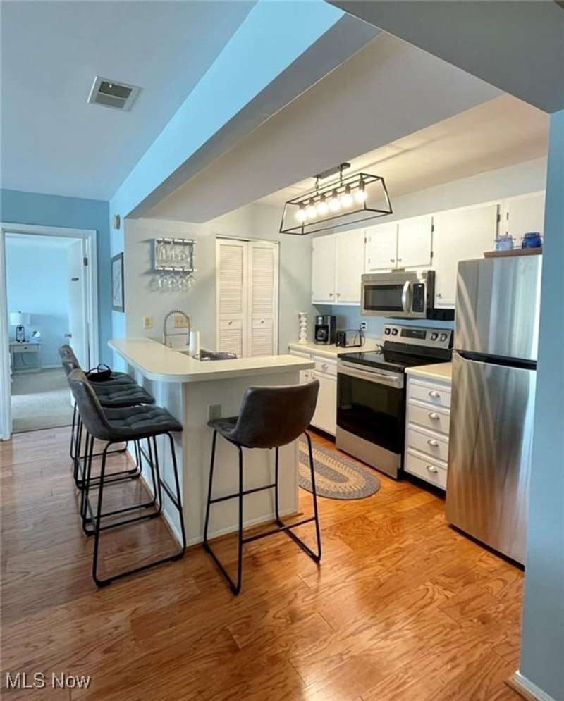 Lake Erie Views from this third floor, 35' dock slip included - new docks put in - pool and clubhouse! Relax in your spacious living room space that opens to the kitchen/dining room w/appliances that remain, bar seating. Entertain on your balcony while you enjoy watching the waves and boats. Storage closet. Watercolor views of Lake Erie from your large master bedroom with great sunlight that flourishes in from the second balcony - great place to relax and unwind. They say things in life aren't free... but these sunsets are!!! Walk-in closet. Updated hall-full bath w/walk-in shower and laundry/mechanical room. Dock your water toys at the 30' boat, enjoy the heated pool, sauna, club house, and walking distance to downtown. Endless opportunities... Assoc. dues include trash, water, sewer, dock maintenance.... What more can you want? Check it out today! Can be weekly rented! Furnishings stay! Weekly rental -- YES!!