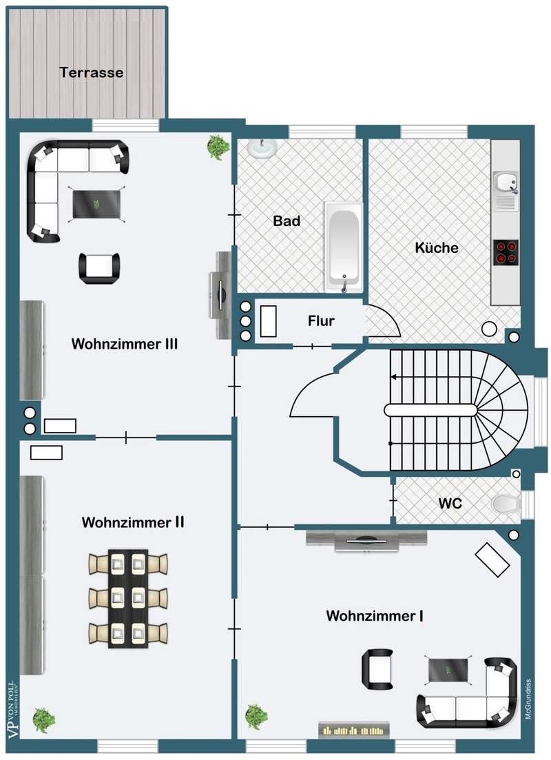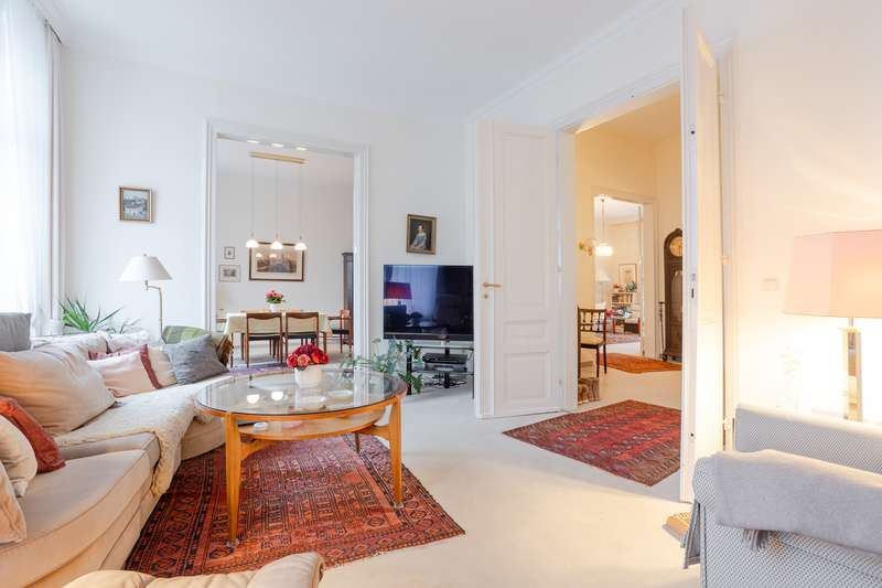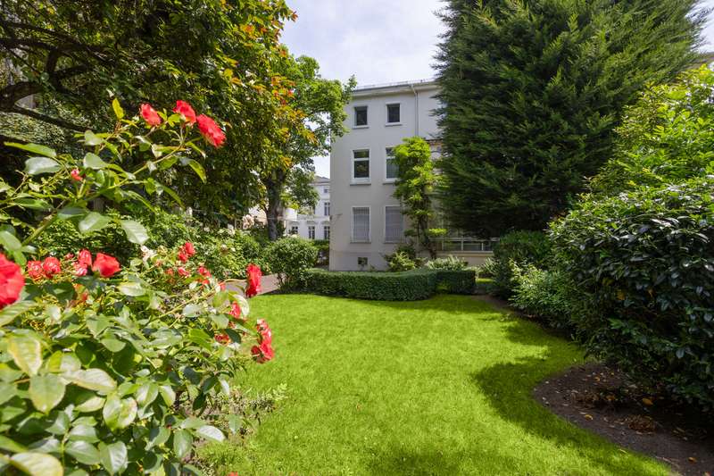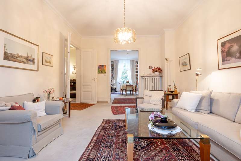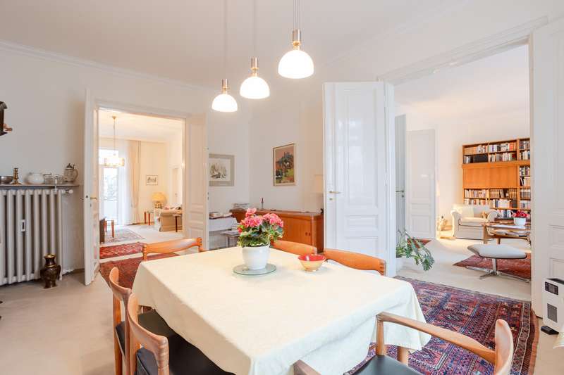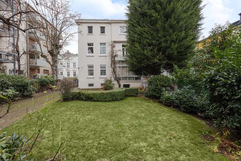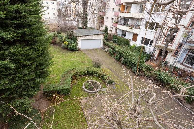 Exclusive city villa in a prime location in Nordend - an absolute rarity in one of the city's most sought-after residential areas. The versatile property offers generous living space on several floors and can be used in a variety of ways - whether as a prestigious detached house with granny apartment or as a classic apartment building. The house is currently vacant and awaits new ideas. On the first floor, you are greeted by a spacious entrance hall, from which three stylish rooms with classic double doors lead off. Particularly impressive here are the exceptionally high ceilings of up to four meters, which lend the rooms a special spaciousness and atmosphere. One of the rooms leads directly into the bright conservatory, which gives you access to the lovingly tended west-facing sun garden measuring around 200 square meters. Here you can enjoy relaxed family celebrations, convivial barbecues with friends or simply quiet hours in the greenery in summer. The exceptionally beautiful old staircase with its historic, lovingly preserved wooden staircase leads to the upper floors. This special staircase is not only functional, but a real gem that impressively underlines the old building charm of the villa. Two spacious, light-flooded rooms with a variety of uses await you on the second floor. The floor is complemented by a full daylight bathroom, a guest WC and a spacious eat-in kitchen with room for social gatherings. The adjoining balcony offers a beautiful view of the green rear courtyards. There are four further rooms on the 2nd floor, which are currently used as a study, bedroom and utility room. There is also a daylight bathroom and an additional guest WC. The high ceilings, the historic double doors and the view over the idyllic gardens of the neighborhood enhance the special charm of this floor. The top floor, which can also be reached via the beautiful staircase, offers further potential for individual use. The house also boasts a spacious vaulted cellar, which offers plenty of space for crafts, hobbies or storage. The property includes a double garage, which is accessible via a private driveway next to the house - a practical detail that is not a given in this location. Despite its central location, the house is situated in a quiet residential street with little through traffic - a real rarity in Nordend. Overall, the property is in a very well-kept condition, has been continuously maintained, but requires modernization in order to fully meet today's living requirements. This urban villa combines historical charm with unique potential and offers a rare opportunity to create individual living space in a prime location.