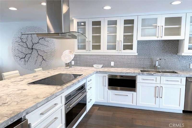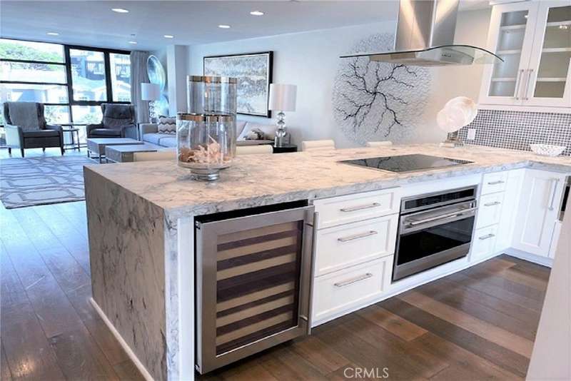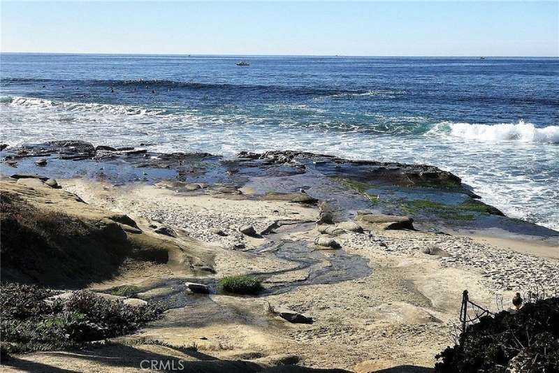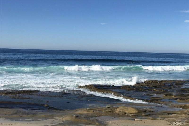 FULLY FURNISHED. Gorgeous 4th floor single level penthouse unit with ocean view just steps from the sand. Open floorplan with 2 bedrooms and 1.75 baths. Located directly across from access path to Windansea Beach. Walk to La Jolla Village with its wonderful restaurants, shops and art galleries or enjoy a breathtaking walk along the ocean with rock formations, tide pools and whitewater views. Unit was remodeled a few years ago and has an updated kitchen with designer appliances: SubZero refrigerator, Bosch dishwasher, Wolf stovetop, oven and microwave; shaker cabinets; wine refrigerator. Elegant countertops are dolomite granite with waterfall edges. Beautiful wood floors throughout. Impeccably furnished and move-in ready with barstools, dining set, Smart TVs in living room and both bedrooms. Bedrooms have Enso electric beds and closets by California closets. Living room with fireplace and floor to ceiling windows plus access to balcony. Master bathroom has two sinks, stone countertops and natural stone flooring accenting a dramatic soaking tub and shower. Separate laundry room includes LG washer and dryer. Unit is in an impressive, well-maintained four-story building with security gate, elevator and two garage spaces. Adjacent to the building’s common area fourth floor deck which features a grilling area, firepit with seating, dining table and ocean views.