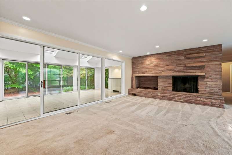 UNBELIEVABLE OPPORTUNITY to own this brick cape that lives like an EXECUTIVE RANCH on main level w/FLOW & FUNCTION in coveted Blueberry Hill district. Home s footprint is ample, POTENTIAL endless & FIRST TIME being offered to marketplace on a great street with a tremendous range of property values. Fantastic & generous main level showcases hardwoods under most carpeting including the open living/dining room w/stacked stone fireplace opening to four season sunroom beyond w/half-vaulted ceiling, tile floors, skylights & walls of glass. Cozy den features bow window & custom built-in bookcase/dry bar. Kitchen has ample space w/white wood cabinetry, center island & eating area. Mudroom houses laundry & hall closet. Bedroom wing has large primary suite w/wall of closets, 2 more bedrooms w/double closet & tiled full bath. Upper-level offers flexibility in uses w/loads of storage, 4th bedroom w/hardwoods, home office & third full bath. CLASSIC home that will SHINE with your COSMETIC TOUCHES.