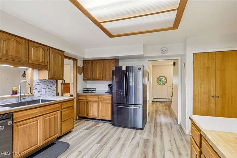 This well maintained, 4 bedroom, 2 ? bath colonial is nestled in one of Medina's cherished neighborhoods. The covered front porch creates warming curb appeal. The foyer leads to the family room and the large living room with southern exposure for tons of natural light from the large picture window. The living room leads to the dining room, flanked by the ample kitchen. The kitchen offers an abundance of counter space and stainless-steel appliances. Step down to the family room featuring a fireplace. Sliding glass doors exit to an expansive sunroom, bordered by a paver brick patio. Off the family room is the first-floor laundry and a powder room. The entire first floor has newer luxury vinyl flooring. The upper level features a master bedroom with a full bath and double closets. The master bedroom has convenient access to a second bedroom. A great set up for an office or exercise room. There a 2 additional bedroom and a full bath on this level, as well as access to an attic storage area.