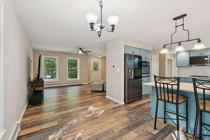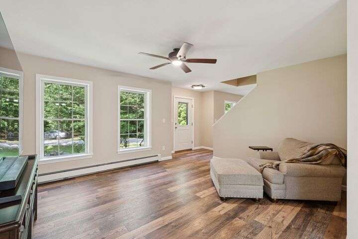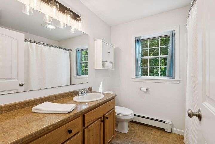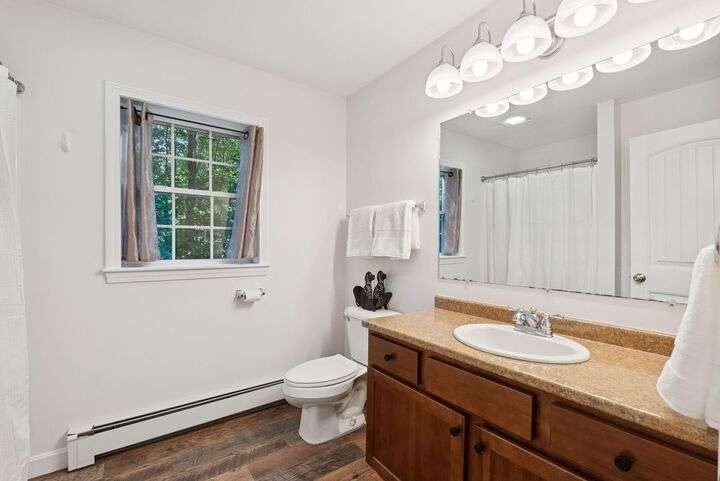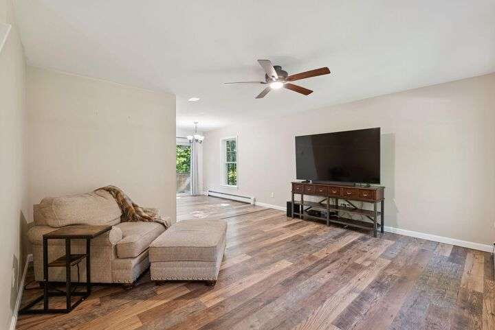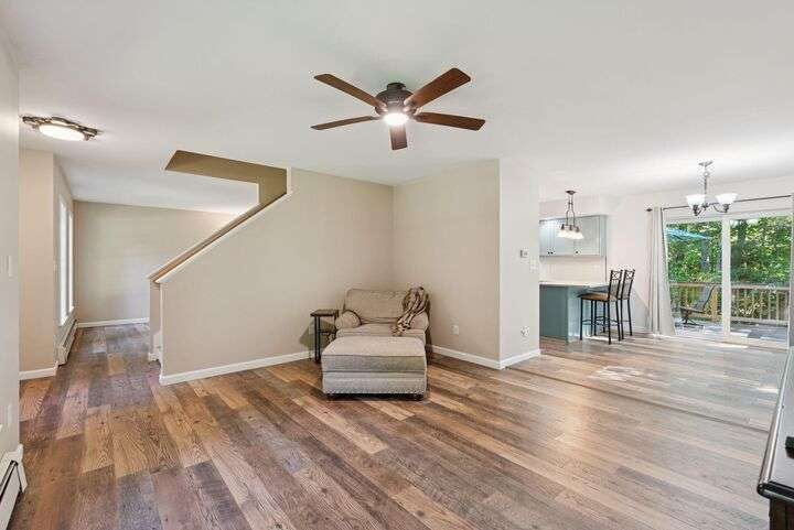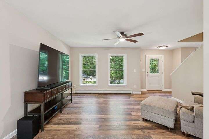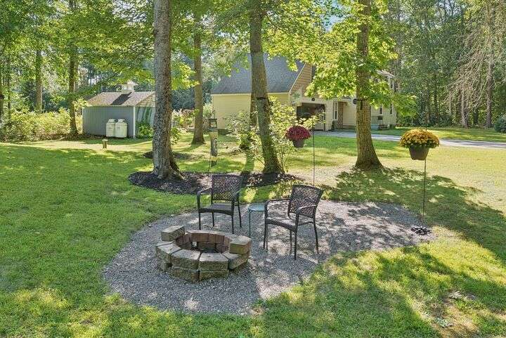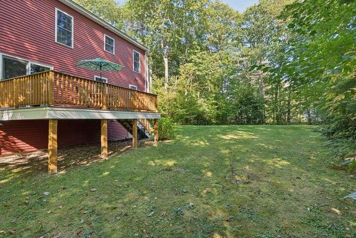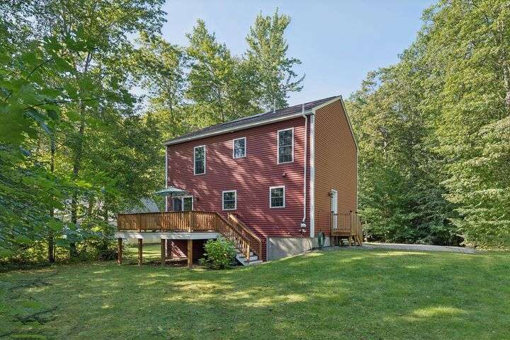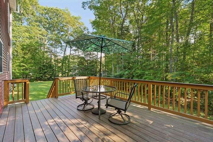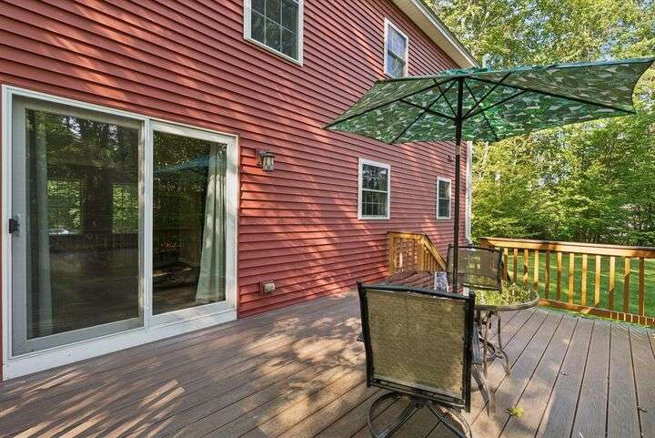 There's a quiet kind of magic at 15 Pemberly Drive. Tucked away on a peaceful lot, this classic colonial is surrounded by tall trees and framed by a wide, open lawn that invites you to slow down and savor life's simple pleasures—barefoot summers, evening games of catch, and afternoons spent soaking in the sunshine. Inside, the home feels both welcoming and effortless. At its heart is the kitchen, a gathering place where stainless steel appliances, a gas cooktop, wall oven, and rich cabinetry set the stage for everything from weekday dinners to holiday feasts. The island offers space for bar stools—the perfect spot to sip morning coffee, enjoy a quick breakfast, or chat while dinner is being prepared. The dining and living rooms connect seamlessly, creating a natural flow where conversations carry easily and laughter feels at home. Upstairs, four bedrooms and a full bath provide space for everyone—and for every need. The upstairs laundry adds ease, while the thoughtful layout offers flexibility that grows with you. Downstairs, the finished basement opens the door to even more possibilities—imagine movie nights that feel like a theater, a home gym that's steps from your door, or a flexible space for hobbies, gatherings, or simply unwinding at the end of the day. Outdoors, the property unfolds like a private sanctuary. From the composite deck, a level, tree-lined yard stretches out in every direction. A dedicated fire pit area invites evenings under the stars, where memories are made around a crackling flame. Set on nearly an acre, 15 Pemberly Drive offers the best of both worlds—peace and privacy, yet just minutes from Windham's commuter routes.