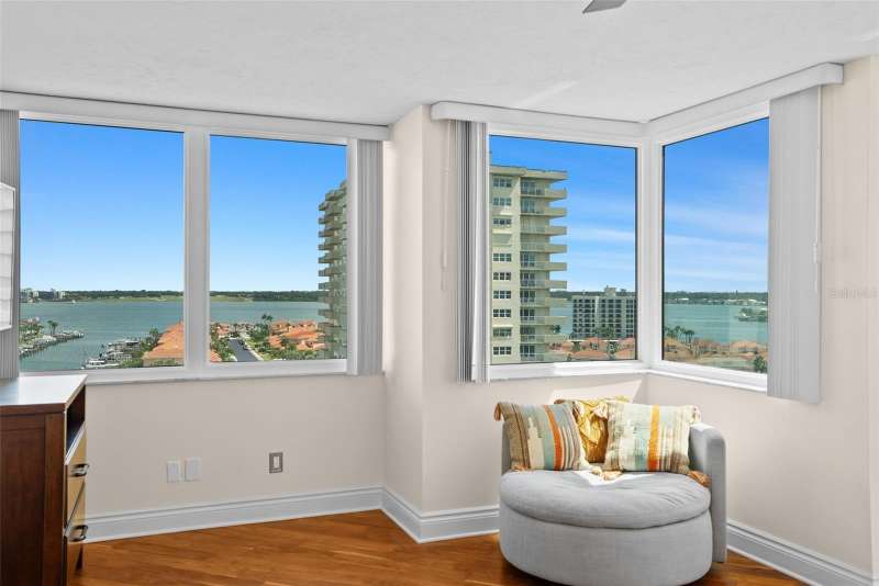 SUN-SATIONAL LIVING on Clearwater Beach! Available UN-FURNISHED or Furnished! First time rental 3 bed, 3 bath condo in the Elite gulf front community of Dans Island on world famous Sand Key! Option of being furnished available! This stunning 10th floor residence offers nearly 2,000 SF of coastal luxury with two sun drenched balconies perfect for watching breathtaking sunrises over the intracoastal waterway and evening city lights with refreshing Gulf breezes. Step inside and be greeted by a distinctive foyer leading to an open, versatile layout featuring a great room and dining area with gleaming Acacia wood floors and recessed lighting for the perfect blend of warmth and sophistication. The chef inspired kitchen is beautifully updated with granite countertops, shaker cabinets, stainless steel appliances, and a bonus dining nook that opens directly to the balcony. Each of the three en-suite bedrooms is thoughtfully designed for privacy and comfort. The primary suite delivers a true retreat with panoramic views of the Intercoastal Waterway & private marina across the street, plus a luxurious spa style bath with double vanities, soaking tub, custom tile, and walk-in shower. Secondary bedrooms are spacious, feature walk-in closets, and share access to a private balcony, while the split plan 3rd bedroom offers additional privacy for guests. Additional highlights include a huge inside laundry room with full size washer and dryer with and additional utility closet for extra storage, two private balconies, and elegant contemporary finishes throughout. Dans Island offers resort style amenities, including: heated pool and spa, grill areas, private beach access, separate clubhouse with basketball court, fitness room and top floor clubhouse with full kitchen, pool table and 2 balconies overlooking the sugary sands of the Gulf. This UPSCALE living can be yours. Call for a private showing today!! $75 App fee/adult, $300 non-refundable pet fee each pet, security deposit equal to one month's rent, $75 tenant annual processing fee each household after acceptance.