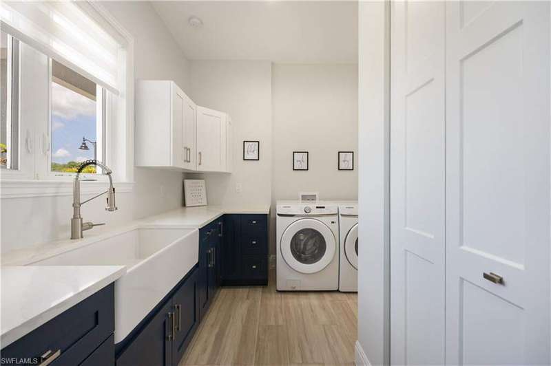 Live the Florida lifestyle to the fullest in this beautifully designed lakefront home in Royal Palm Golf Estates! This 3,142 sqft residence offers 3 spacious bedrooms + office, 3 full bathrooms, 1 half bathroom, and a light-filled open floor plan perfect for both relaxing and entertaining. Enjoy soaring tray ceilings, upgraded tile flooring, and expansive water views from nearly every room. The gourmet kitchen features an oversized island, cabinet lighting, walk-in pantry, and dual-zone wine fridge-ideal for hosting family and friends. Each bedroom includes a private en-suite bath and custom walk-in closet, while the luxurious primary suite offers his & hers closets and a spa-inspired bathroom retreat. Step outside to your oversized screened lanai with a built-in outdoor kitchen, grill, and multiple seating areas overlooking the tranquil lake. Additional highlights include electric blinds, French doors, custom cabinetry, and a spacious laundry room with extra storage. Located in a gated golf course community with low HOA fees, underground utilities, and access to Eagle Lakes Golf Club. Just minutes from Marco Island and downtown Naples, this home offers the perfect blend of comfort, elegance, and convenience