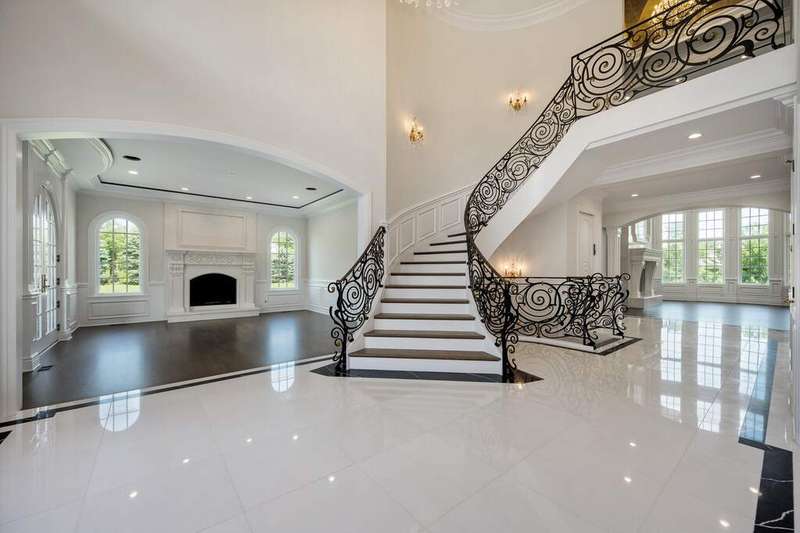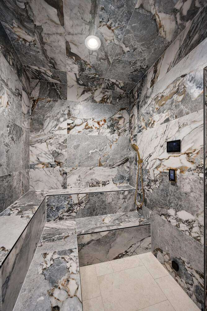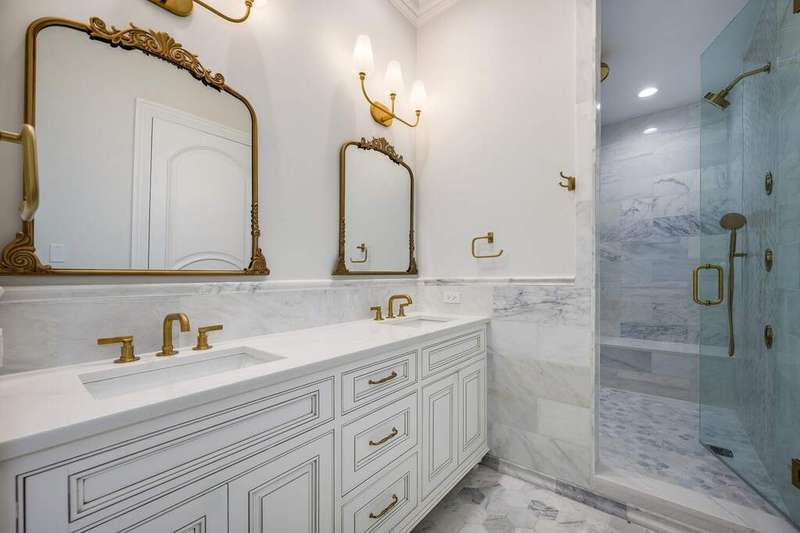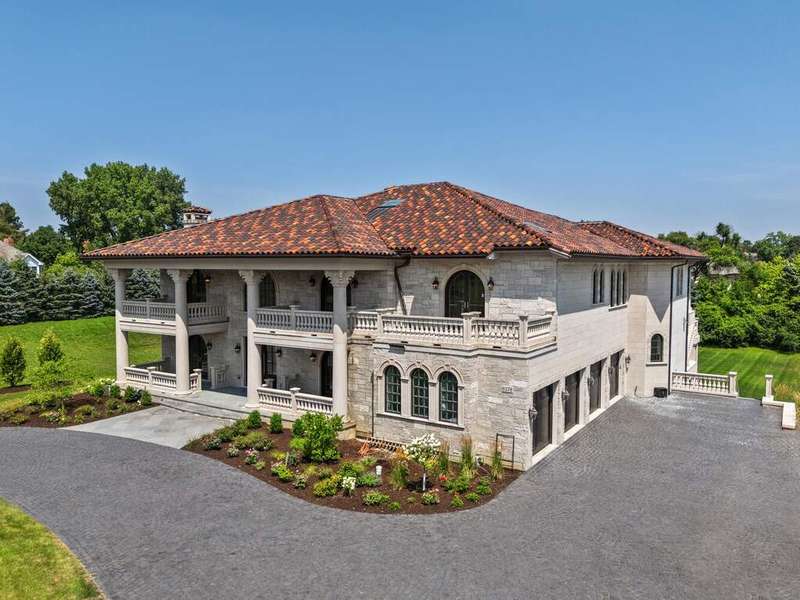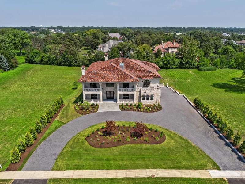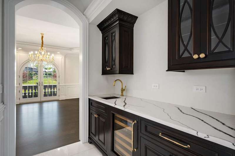 Welcome to 6413 County Line Road-an extraordinary new construction estate set on a full acre along Burr Ridge's prestigious Millionaires Row. Masterfully designed with timeless architecture and best-in-class finishes, this home offers a rare blend of luxury, comfort, and craftsmanship. The exterior makes an immediate statement, wrapped entirely in natural stone and limestone with a terracotta clay tile roof and Marvin windows throughout. Natural cobblestone pavers lead to a grand entrance framed by bluestone steps and manicured landscaping. Inside, you're welcomed by radiant-heated white Thassos marble floors with black inlays, soaring ceilings, and exquisite millwork throughout. The chef's kitchen is outfitted with Sub-Zero, Wolf, Thermador, and Bosch appliances, marble countertops with full slab backsplash, and custom cabinetry in a mix of painted, glazed, and stained finishes. A second full kitchen on the lower level adds exceptional functionality. Each bedroom is a private suite with its own balcony, while the primary bathrooms are outfitted in floor-to-ceiling marble with digital Kohler and Grohe fixtures and radiant heat. Throughout the home, 5" white oak flooring adds warmth, and four custom staircases with hand-forged wrought iron offer both elegance and flow. The lower level is designed for entertaining and wellness, featuring a full bar, state-of-the-art theater, sauna, steam room, and a custom three-level elevator. The four-car garage and driveway are both radiant-heated for year-round ease. Located near top-rated schools, country clubs, Hinsdale Hospital, and just minutes from downtown Hinsdale and Burr Ridge, this home delivers unmatched quality in one of Chicagoland's most coveted locations.