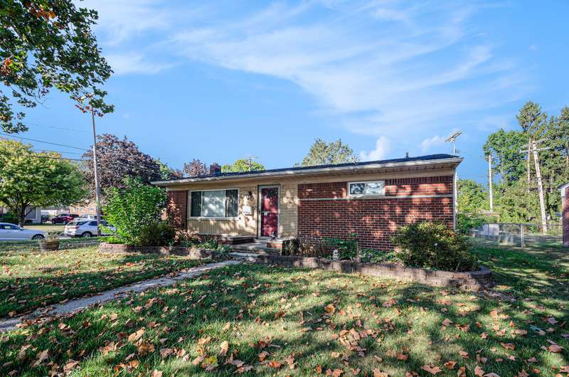 Solid brick ranch with endless potential. This home sits on a desirable corner lot and offers a practical layout with hardwood floors in the living room and two bedrooms. The third bedroom is currently being used as a dining room but can easily be converted back. A nice kitchen adds to the appeal, and ceiling fans along with central air provide year-round comfort. The partially finished basement expands your living space, featuring a half bath and a room with an egress window—ideal for finishing as another bedroom with the addition of a closet. Outdoor living is just as inviting with a covered side patio and a yard ready for your personal touch. Please note: the home is being sold as is. No appliances are included, and the seller will not make repairs. Buyer is responsible for all city-required inspections and repairs. Seller will be present at all showings. Buyers and their agents should verify all measurements. 24 hr notice to show This property is perfect for those looking to bring their own vision and updates to a well-built ranch with great bones and plenty of potential.