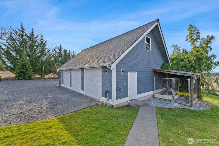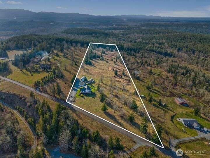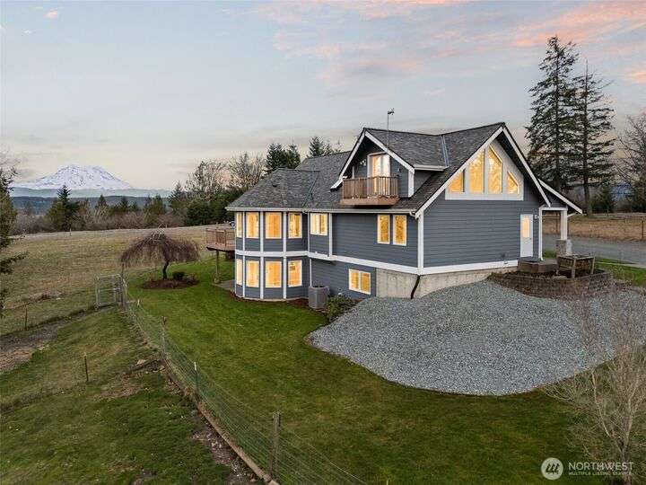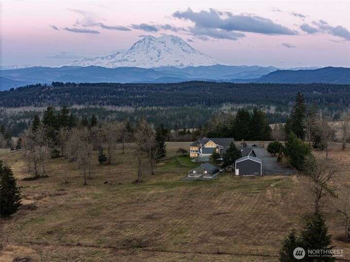 Breathtaking Mount Rainier & Olympic Views! This stunning custom home sits on 20 private acres in a gated community of high-end homes, offering the perfect blend of luxury and rural tranquility. Spanning 4,039 sq. ft., this meticulously designed residence features 3 bedrooms, 3 bathrooms, and a potential 4th bedroom. The lower level presents an opportunity for a MIL suite, adding to the home's versatility. Designed for both comfort and functionality, the property includes a 30’x36’ greenhouse, a 40’x30’ shop, and a spacious detached garage. A newly installed 40-year roof, a/c, automatic generator, and irrigation system provide peace of mind. Endless possibilities for customization, this is a rare opportunity to own an exceptional estate