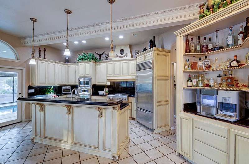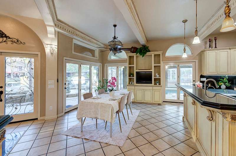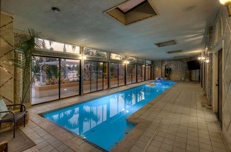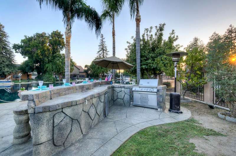 Luxury northwest Visalia living at its BEST! Gorgeous waterfront 5000+ sf 5 bed/5 bath custom home in the prestigious guard-gated community of ''The Lakes'' with over 200 feet of waterline, private dock, & indoor pool. One of the biggest lots on the main lake. Breathtaking views of the water & fountains from almost every room w/a double balcony across the back and a first-floor suite w/separate entrance and bonus room for an office, gym, or second TV area. Cruise across the lake or relax on the huge outdoor patio with built-in fire pit, dining table, and outdoor kitchen and bar, perfect for watching the sunset over the water. The heated lap pool is surrounded by glass sliders for year-round swimming. From outside to inside, this home is built for entertaining with an open floor plan across the back from the living room to the kitchen, large wood-paneled formal dining room & living room/office, and an extensive wet bar. The sprawling kitchen is a chef's dream with tons of granite counter space, an island breakfast bar & dining area, stainless steel appliances including two dishwashers, 5-burner gas cooktop, Subzero fridge, Dacor warming drawer, walk-in pantry, & glass doors onto the pool plus views of the lake. Upstairs - two more bedrooms with attached baths (total of 3 en-suites w/the primary) and two more bedrooms with another bath & dual sinks. Primary suite is an oasis with double doors opening onto a generous bedroom featuring a fireplace, built-ins, & a balcony lake view. Imagine a relaxing bubble bath in the huge jetted tub while watching the fire or TV. Giant walk-in closet, private toilet & shower round out your suite, connected to a large laundry and hobby/makeup room. Front courtyard offers golf cart parking, fruit trees line property, & owned solar. Note: Bed/bath count & square footage differ from tax records. The Lakes has 24-hr security, clubhouses, outdoor pool, tennis. Don't miss out on your opportunity to make your home feel like vacation living.