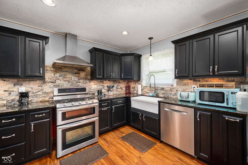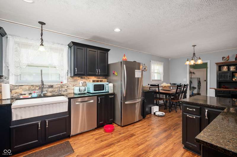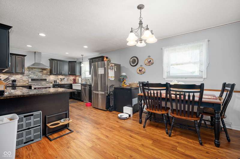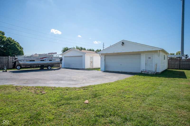 Fabulous ranch home packed w/ custom features that you won't find anywhere else! This home has been renovated with care giving you the opportunity to own a semi-custom feel without the price that usually accompanies it! Fully-renovated kitchen w/ custom Medallion wood cabinets that are soft-close, granite countertops, ledge stone backsplash, porcelain farm sink & vinyl plank flooring. Brand new dishwasher, SS double-gas range w/ convection, vent hood & refrigerator. Washing machine & gas dryer included! This home improved to provide several accessible features such as: walls removed, widened hallway, widened doors, custom laundry area, extended front porch w/ rails (ramp not incl.), vinyl plank or hardwood floors throughout 90% of the home & a recently completed asphalt driveway! Wow! 1-yr old HVAC, water heater, sump pump. Newer full exterior & interior paint, front door, interior doors, upgraded 200amp electrical panel, added interior lighting, new landscaping, water softener (paid) & a reverse osmosis system. If you work from home, an office was recently added & finished (no HVAC); ready for you to make it the office of your dreams. Are you looking for space to work on projects? I'll let you in on a secret, this home boasts a 2-car attached garage & TWO separate detached garages; one is a 2.5-care & one is a 2-car! Both w/ electrical service! Fully-fenced yard (front & back) on an end-lot w/ no subdivision & NO HOA! Greenwood Community Schools; both less than 1-mile away. Close to everything (Freedom Park which includes "Aquatics, Trails, Pickleball", restaurants, shopping & 2-miles from I-65. If you're looking for a move-in ready home in an ideal location, look no further!