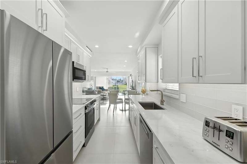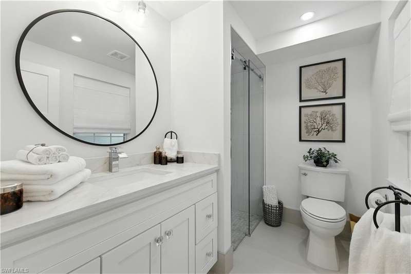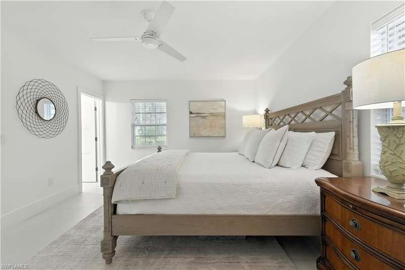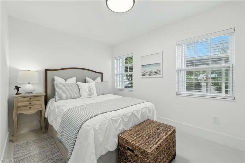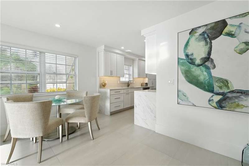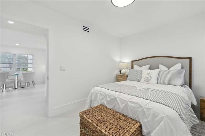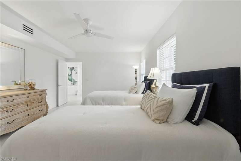 Exquisite 3-Bedroom Condominium/Villa at Holly Green Villas. This unit shares no walls allowing you to Experience Coastal Living at Its Finest! This impeccably renovated condominium embodies the essence of coastal elegance. Nestled in the highly desired Moorings/Park Shore area just steps from the sparkling beaches and directly on the serene waters of Moorings Bay. This bright and airy 3-bedroom, 2-bathroom condo boasts two private and convenient entries. One partially shared gated courtyard entrance from the guest parking area equipped with keyless entry and one from your own designated covered parking spot to the front door. Both serve unique needs. Look out over the beautifully landscaped grounds, where lush tropical greenery welcomes you home. With oversized tile flooring throughout, the space exudes a clean, contemporary charm. Retreat to your tranquil primary bedroom, featuring a king-sized bed, a television for your entertainment, and an ensuite bathroom complete with a modern curbless shower entry. A generous walk-in closet with built-ins ensures that your wardrobe has all the space it needs. The condo features two inviting guest suites—one furnished with a queen bed and the other with two XL twin beds—perfect for family visits or entertaining friends. Each room is designed with comfort in mind, ensuring your guests feel at home. The second full bath includes a step in shower, backlit mirror and luxury tile. The fully equipped kitchen showcases exquisite quartz countertops with a waterfall accent and brand new appliances which provides both functionality and elegance for culinary adventures. With chic furnishings that complement the condo’s aesthetic, every room serves as a cozy yet sophisticated space to unwind. Unit includes WIFI and washer and dryer. Step outside to enjoy the pool area, where you can bask in the warm sun or lounge while enjoying the activities on Moorings Bay. Boat docks are available and fishing can be enjoyed while relaxing bay side on comfortable adirondack chairs. With the beach just steps away, it’s easy to indulge in morning strolls along the shore, afternoons filled with sun and surf, and stunning sunsets in the evening. Located on the bay side of Gulf Shore Boulevard N, this exceptional residence is close to the vibrant Venetian Village. A short drive will take you to the the Shops at Waterside and also to the heart of Old Naples, where you’ll find renowned dining, upscale shopping and thrilling entertainment options an 5th Ave and on 3rd Street. Surrounded by coastal activities, exceptional dining and unparalleled shopping, this coastal destination will accommodate your getaway needs.