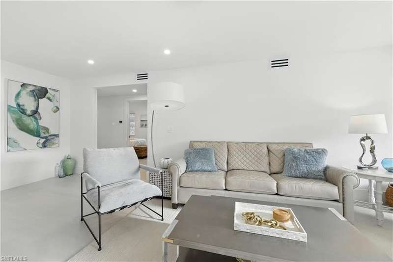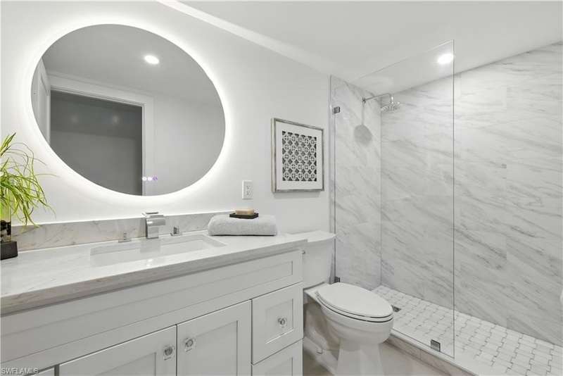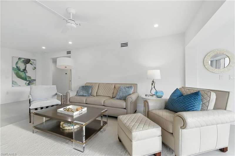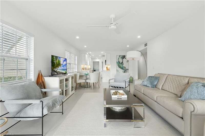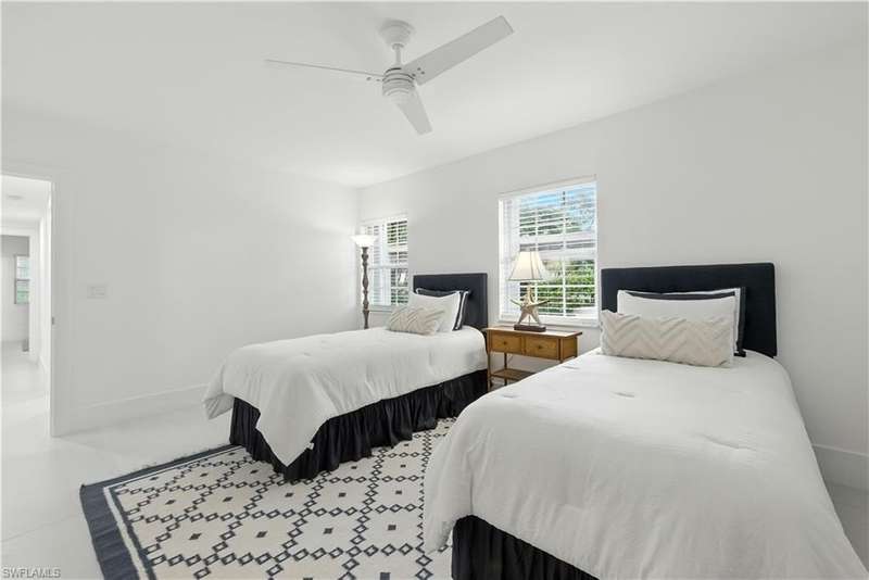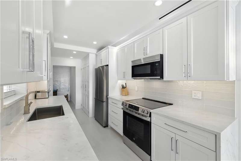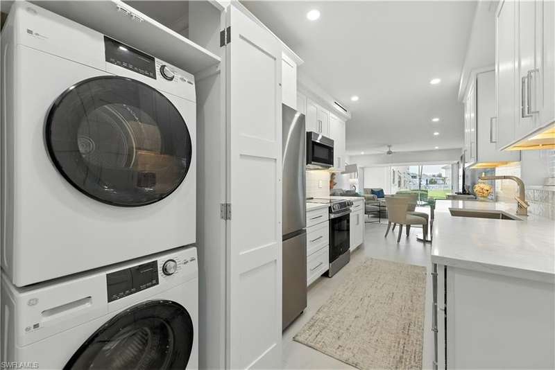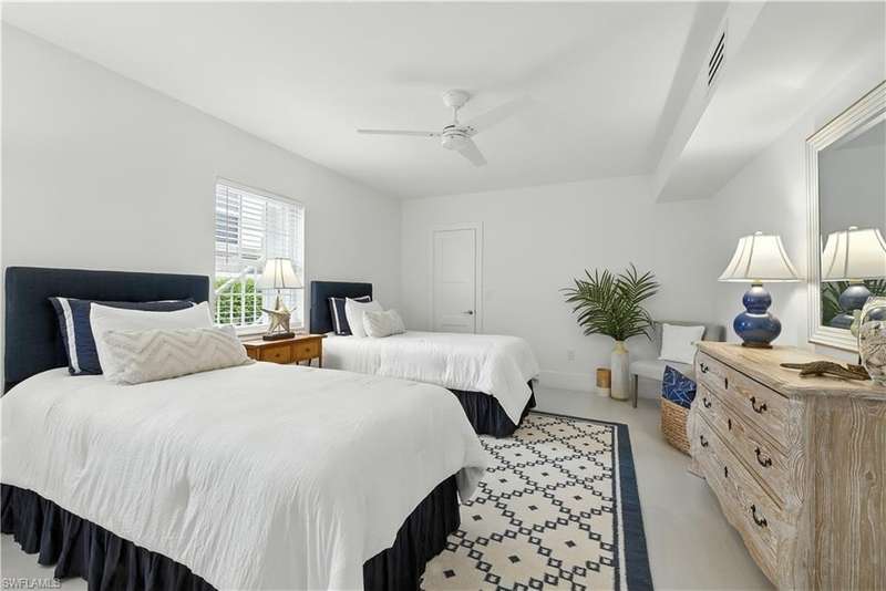 Exquisite 3-Bedroom Condominium/Villa at Holly Green Villas. This unit shares no walls allowing you to Experience Coastal Living at Its Finest! This impeccably renovated condominium embodies the essence of coastal elegance. Nestled in the highly desired Moorings/Park Shore area just steps from the sparkling beaches and directly on the serene waters of Moorings Bay. This bright and airy 3-bedroom, 2-bathroom condo boasts two private and convenient entries. One partially shared gated courtyard entrance from the guest parking area equipped with keyless entry and one from your own designated covered parking spot to the front door. Both serve unique needs. Look out over the beautifully landscaped grounds, where lush tropical greenery welcomes you home. With oversized tile flooring throughout, the space exudes a clean, contemporary charm. Retreat to your tranquil primary bedroom, featuring a king-sized bed, a television for your entertainment, and an ensuite bathroom complete with a modern curbless shower entry. A generous walk-in closet with built-ins ensures that your wardrobe has all the space it needs. The condo features two inviting guest suites—one furnished with a queen bed and the other with two XL twin beds—perfect for family visits or entertaining friends. Each room is designed with comfort in mind, ensuring your guests feel at home. The second full bath includes a step in shower, backlit mirror and luxury tile. The fully equipped kitchen showcases exquisite quartz countertops with a waterfall accent and brand new appliances which provides both functionality and elegance for culinary adventures. With chic furnishings that complement the condo’s aesthetic, every room serves as a cozy yet sophisticated space to unwind. Unit includes WIFI and washer and dryer. Step outside to enjoy the pool area, where you can bask in the warm sun or lounge while enjoying the activities on Moorings Bay. Boat docks are available and fishing can be enjoyed while relaxing bay side on comfortable adirondack chairs. With the beach just steps away, it’s easy to indulge in morning strolls along the shore, afternoons filled with sun and surf, and stunning sunsets in the evening. Located on the bay side of Gulf Shore Boulevard N, this exceptional residence is close to the vibrant Venetian Village. A short drive will take you to the the Shops at Waterside and also to the heart of Old Naples, where you’ll find renowned dining, upscale shopping and thrilling entertainment options an 5th Ave and on 3rd Street. Surrounded by coastal activities, exceptional dining and unparalleled shopping, this coastal destination will accommodate your getaway needs.