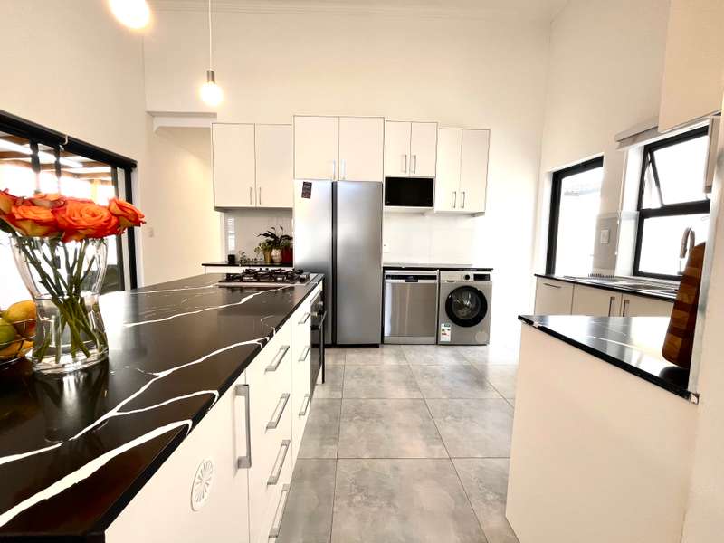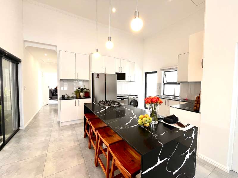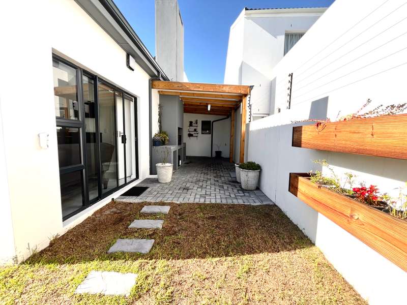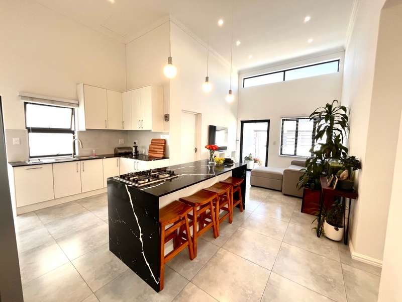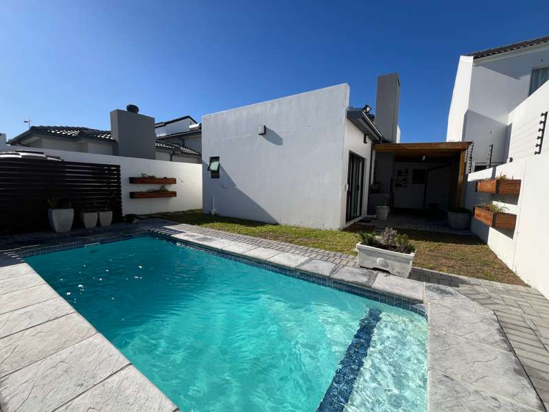 Modern 3-Bedroom Home with Pool in the Heart of Sandown Don't miss this incredible opportunity to own a beautifully maintained, modern home in the heart of sought-after Sandown. Just 3 years old, this stylish property offers the perfect blend of comfort, convenience, and contemporary living. Step inside to an inviting open-plan kitchen, dining, and lounge area, featuring a sleek kitchen island and stunning double-volume ceilings that create a sense of space and light. The home is designed for easy entertaining and everyday living. The master bedroom offers a peaceful retreat, complete with an en suite bathroom and sliding doors that open directly to the garden. The second bedroom includes built-in cupboards, while the third bedroom is spacious and versatile – perfect for a home office or guest room. A full family bathroom caters to your needs, and added extras include a solar geyser and a fitted alarm system for peace of mind. Enjoy Cape Town's sunny days in the beautifully landscaped garden, boasting a built-in braai and a large swimming pool – perfect for entertaining family and friends. The property also includes a single garage and two additional secure parking spaces. This home ticks all the boxes – modern, secure, and perfectly located. Act fast – homes like this in Sandown don’t stay on the market for long!