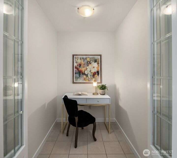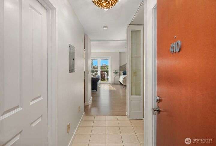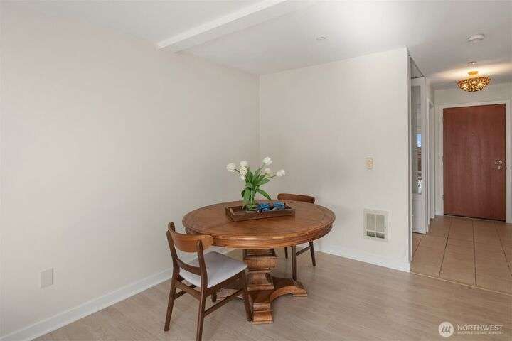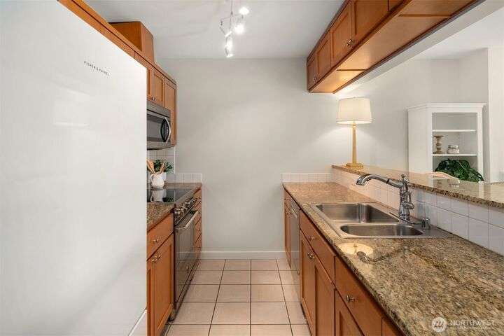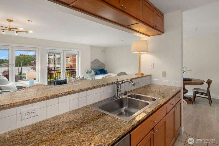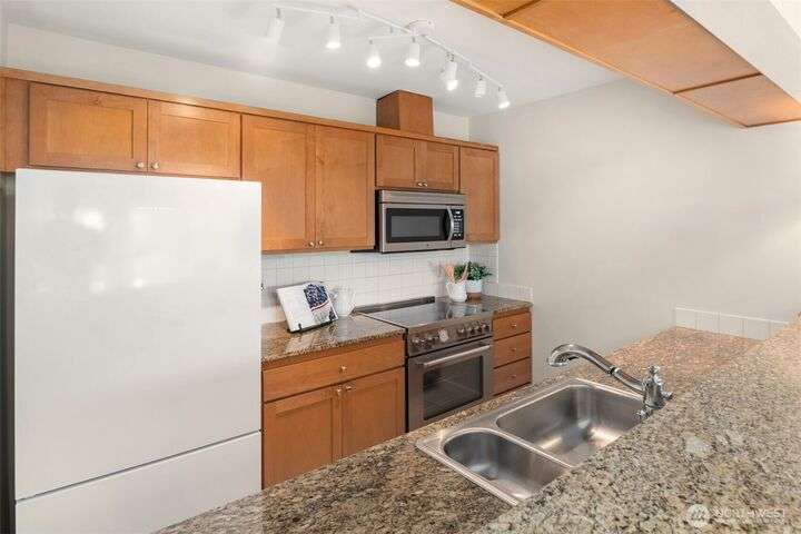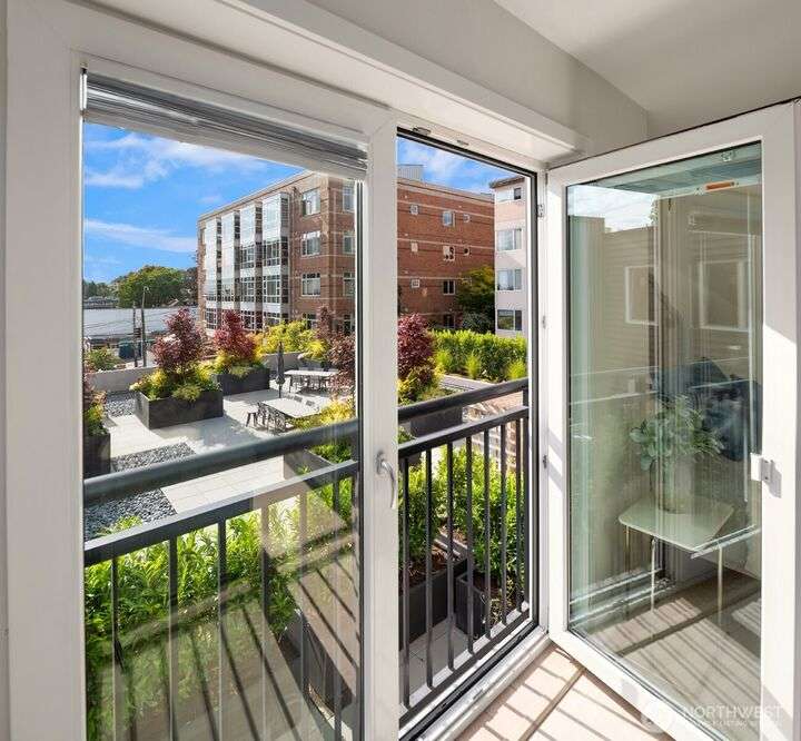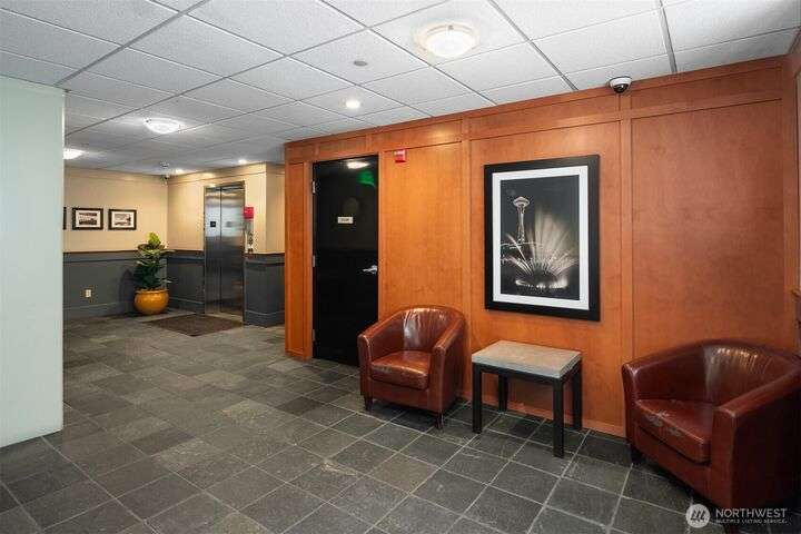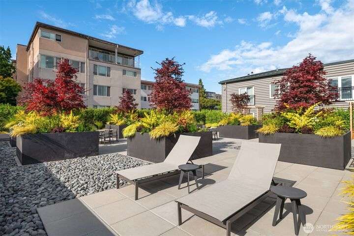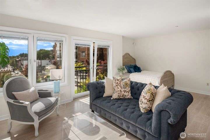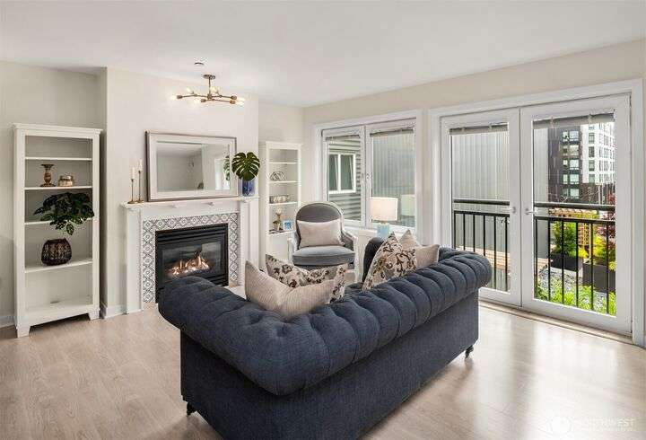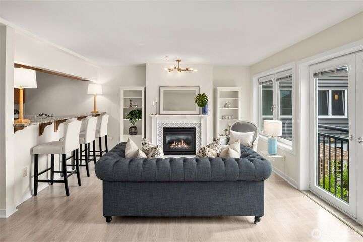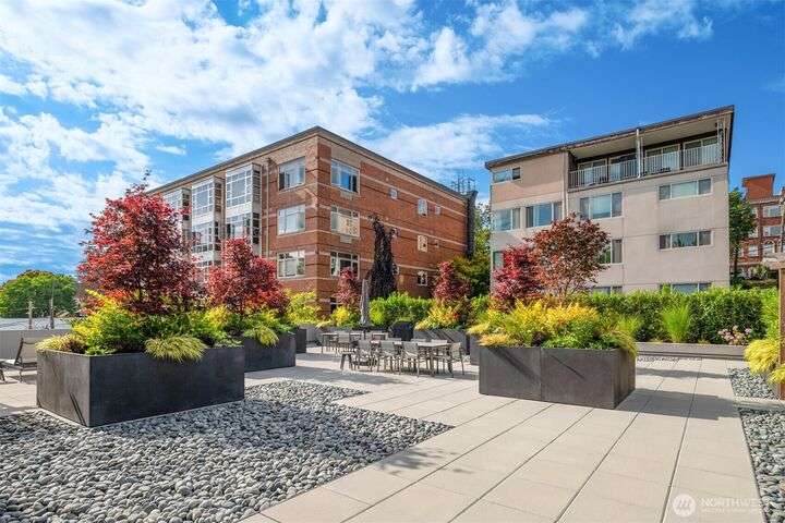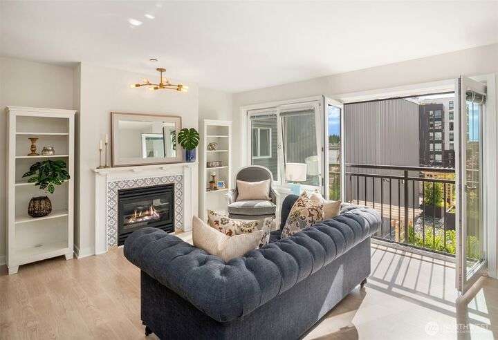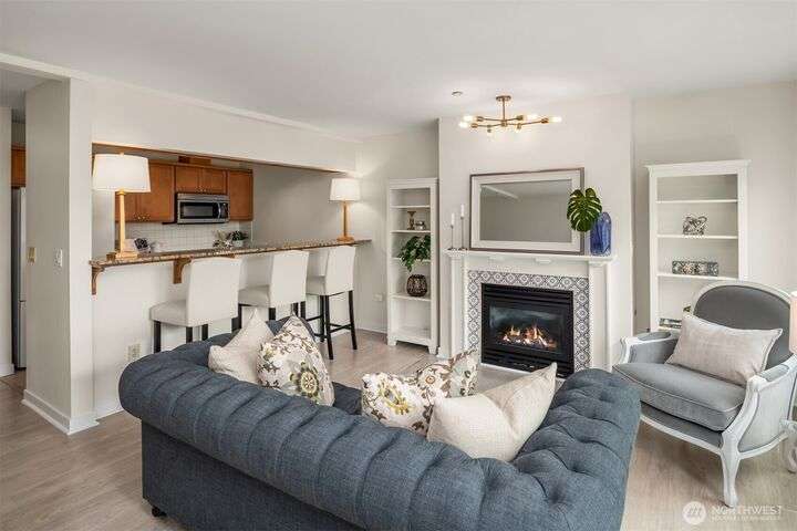 Just blocks from Seattle Center, Climate Pledge Arena, Myrtle Edwards Park, and a vibrant mix of restaurants + cafés, this top-floor Uptown/Queen Anne studio delights. West-facing windows bathe the space in sunlight, framing views of the Olympics above a lush, gardened rooftop. The open layout features a chef-inspired kitchen with granite counters, premium appliances, bar seating, and a cozy gas fireplace. A dedicated office nook provides quiet focus, while a spacious walk-in closet adds storage. The full bath includes a deep soaking tub + high-end in-unit washer/dryer. In a secure building with private parking, storage, gym, and serene community deck, this is the perfect city retreat or elegant pied-à-terre—live at the center of it all!