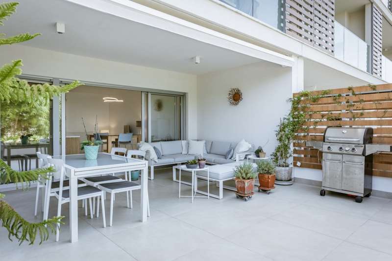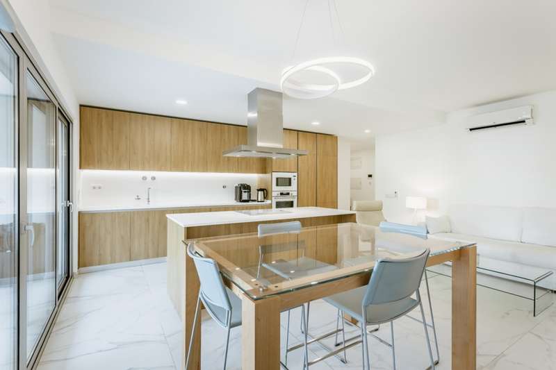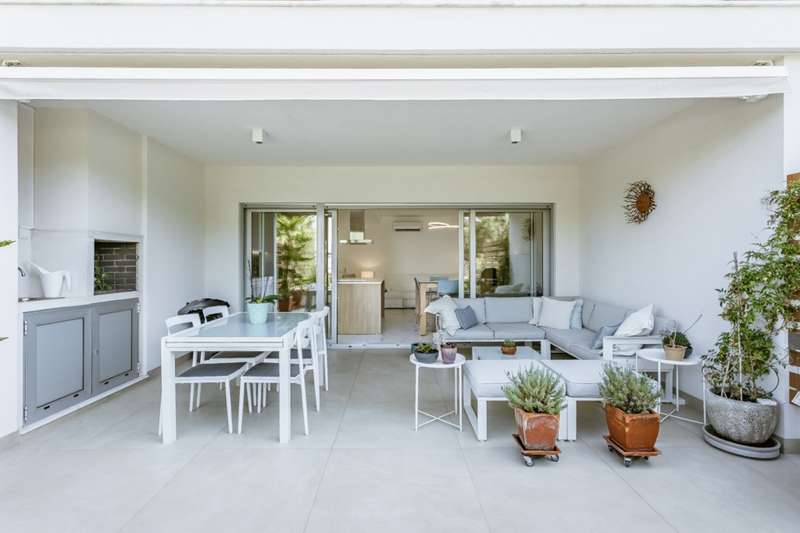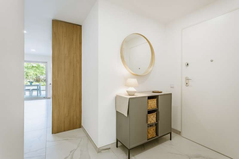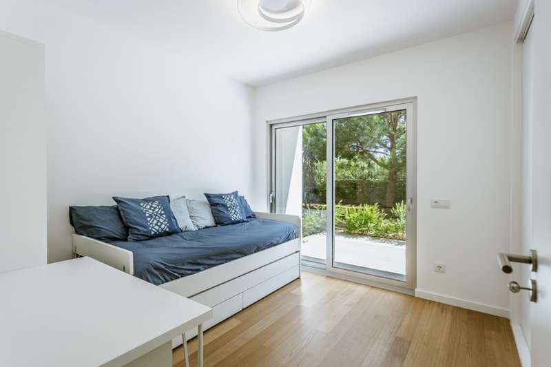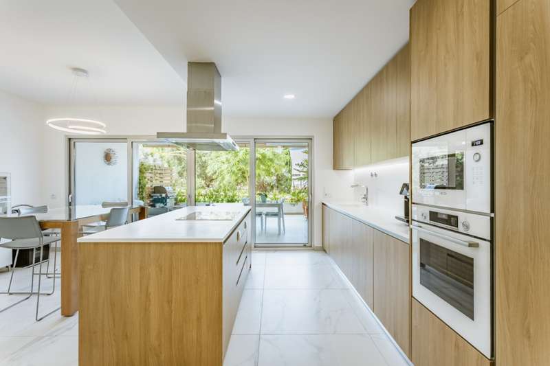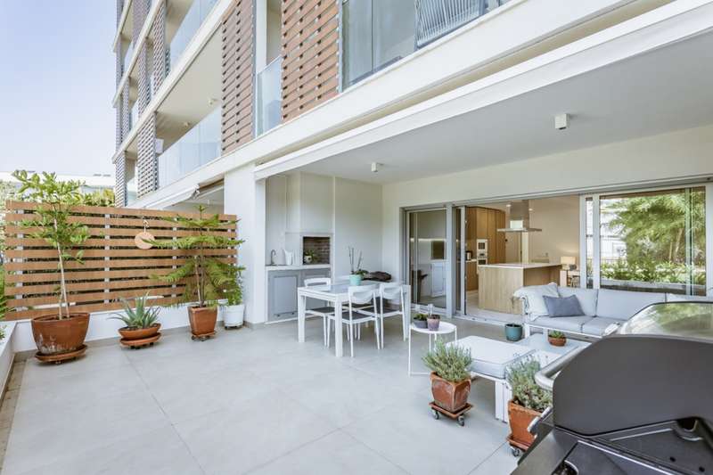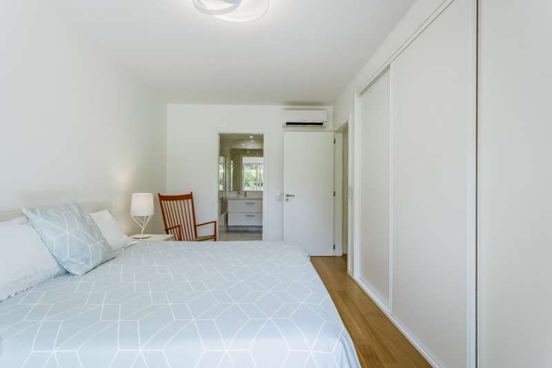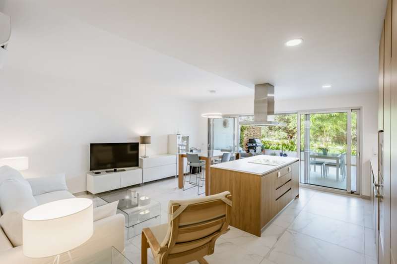 This elegant two-bedroom apartment is the perfect fusion of serenity and urban convenience. Inserted in a modern and well-kept condominium located in Albufeira, in the heart of the Algarve, it offers a balanced lifestyle with access to various amenities, such as swimming pools, a children's playground, gym and ample leisure areas. Situated on ground floor, the property is distinguished by a generous south-facing patio, ideal for enjoying the pleasant Algarve climate all year round. The open-plan kitchen, harmoniously integrated into the living room, offers a spacious, bright and welcoming environment, perfect for moments of sharing and relaxation. Comprising two bedrooms, one en suite, both with direct access to a balcony, the apartment ensures comfort, functionality and privacy for its residents. The unit also includes a private parking space in the basement, equipped with a charger for electric vehicles, reflecting a commitment to sustainable mobility. This is the ideal choice for those who value modern comfort, proximity to services, transport and the many leisure options that Albufeira has to offer, in a space designed for everyday well-being. CHARACTERISTICS:Area: 104 m2 | 1 120 sq ft Useful area: 92 m2 | 986 sq ft Bedrooms: 2 Bathrooms: 2 Energy efficiency: A FEATURES: 2-bedroom apartment Condominium New construction Balcony / Terrace Private parking Swimming pool Gym Children's playground