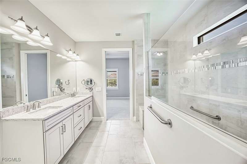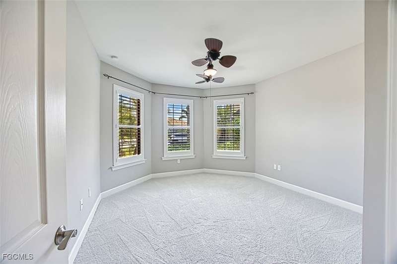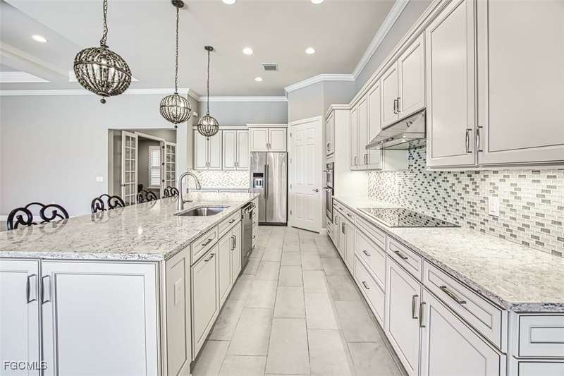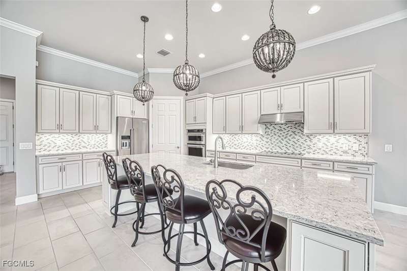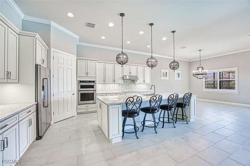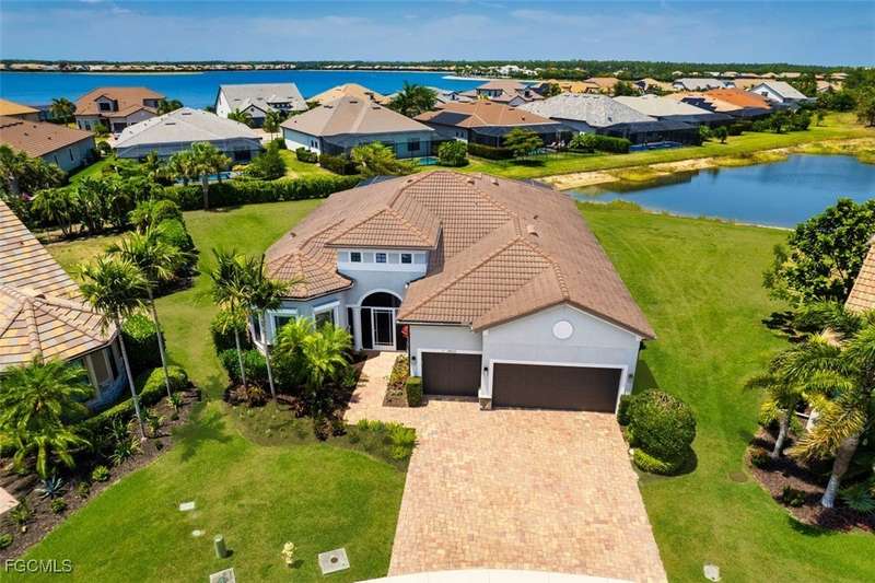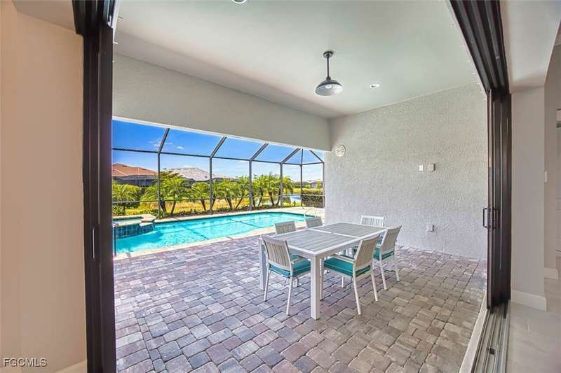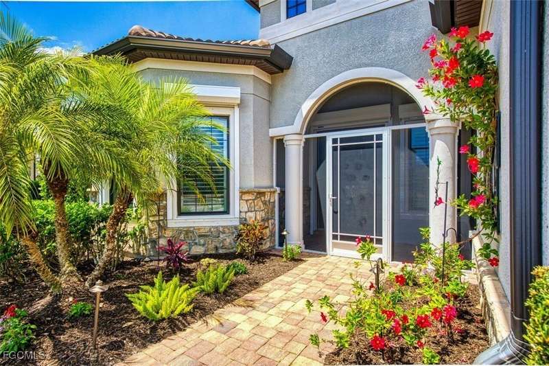 Experience the easy, resort lifestyle at Corkscrew Shores, showcasing 722 acres of tranquil, nature-filled beauty a "world away" yet so close to top-notch shopping, restaurants, health care, RSW, FGCU, Hertz Arena and everything you love about being in SW Florida. This stylish, light-filled & neutral home features the upgrades and updates you desire. Move in and begin enjoying your new home now! Open up the zero corner pocket slider to the screened lanai (with electric shutters) and indulge in your heated pool & spa overlooking a nature-filled lake. Extra 4' builder upgrade in part of the garage. AMAZING VALUE in addition to aesthetics and functionality. This lovely 2488 sq. ft. under air (3149 sq ft total) is all on 1 level & features the luxury upgrades you deserve: soft-close cabinetry and upgraded quartz counters, built-in ovens, zero-entry walk-in shower, all 3 baths are upgrade tiled to the ceiling, high coffered and tray ceilings, crown moulding, matching cabinetry and utility sink in laundry, ceramic tile in the living areas, brand new (April '25) carpet in the bedrooms, custom Plantation shutters, enclosed loggia, updated landscaping, new coach lights and lanai light fixture (April '25), freshly painted garage & exterior doors (April '25), a generous 3-car garage with extra room for storage, and more! Other very important notables like a whole-house generator will give you peace of mind. All this is situated on a tranquil, oversized .30+ acre, cul-de-sac lot. At the heart of Corkscrew Shores is a 240-acre recreational lake and spectacular Amenity Peninsula featuring all the resort-style amenities you'd expect: a coastal-inspired clubhouse hosting weekly activities and special events, a well-appointed fitness center with separate movement studio, zero-entry heated pool with fountains, spa, Captain's Club private restaurant/bar, lighted tennis, pickleball and basketball, 2 bocce courts, fire pit, a launch for canoeing & kayaking, a fishing pier, playground and picnic area. In the back of the community, miles of nature trails adjoin conservation land. Your reasonable HOA fees include lawn and landscaping maintenance, mulching, irrigation, gate security, professional management, and all the amenities I listed. No CDD! No flood insurance required. Set up your private showing and see if this is the new home you've been hoping to find!