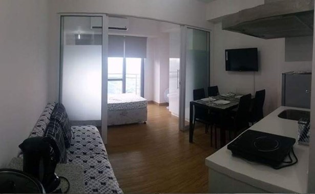 This semi-furnished condo unit is accessible to professionals working in the Makati, Mandaluyong, Ortigas area. With amenities like a lagoon pool, a lap pool, basketball and tennis courts, and the gym, this allows you to remain an active lifestyle in the midst of the hustle and bustle of the metro. An awesome view of the city will let you relax after a hard day's work. 1 bedroom condo unit, 1 bathroom and kitchen; furnished with A/C, fridge, dining set and a queen bed, windows with blinds.Amenities include a lap pool, lagoon pool, basketball court, tennis court , juice bar, gym and sky garden although some of these amenities might still be under construction.