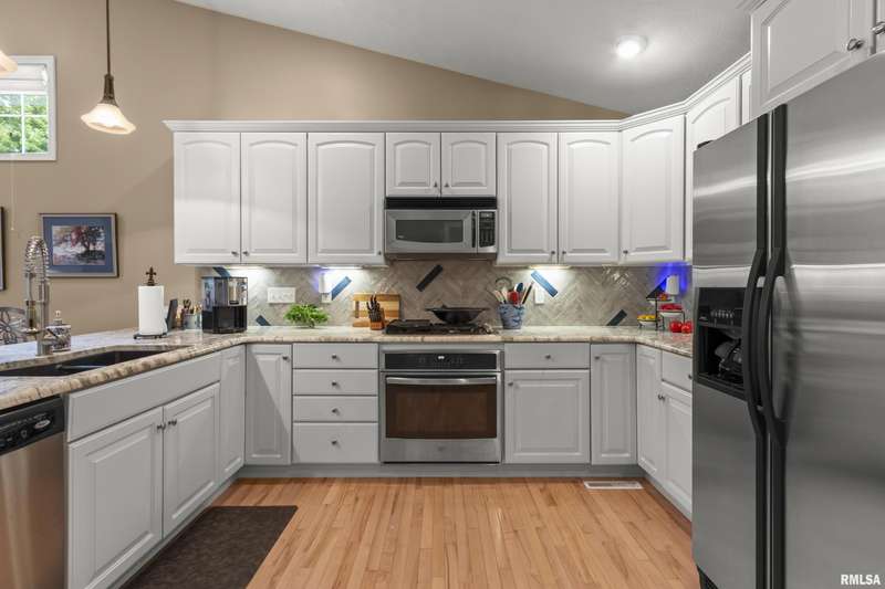Discover comfort and convenience in this charming attached single-family ranch, perfectly located in a quiet, tucked-away neighborhood in the center of Peoria. This well-maintained home offers three bedrooms and two and a half baths, including a spacious primary suite featuring a walk-in closet and a luxurious full bath with a jetted tub. The refinished kitchen shines with new granite countertops, a Silgranit sink, and a breakfast bar that opens into the casual dining area—ideal for both everyday meals and entertaining. The partially finished full basement provides additional living space, including a third bedroom and plenty of room for a family area, home office, or fitness space. Other highlights include a new roof (2021), a two-car garage built in 2024, and a convenient main-level laundry room. Located in a low-maintenance community, the homeowners association handles lawn care and snow removal, allowing you to relax and enjoy your surroundings. With easy access to parks, restaurants, shopping, and local amenities, this home offers the perfect blend of privacy and convenience.