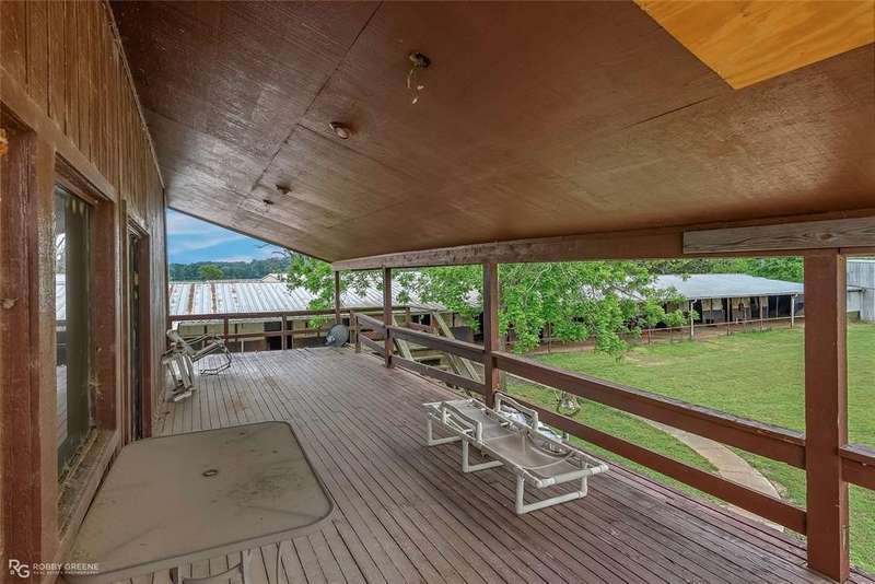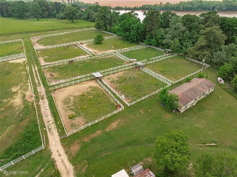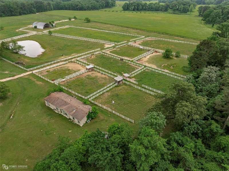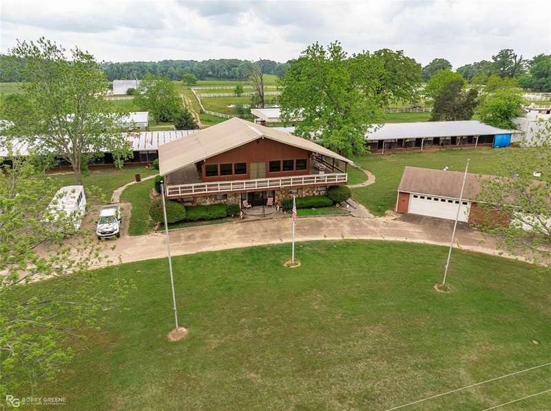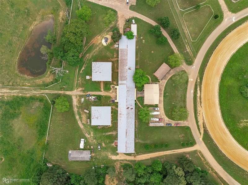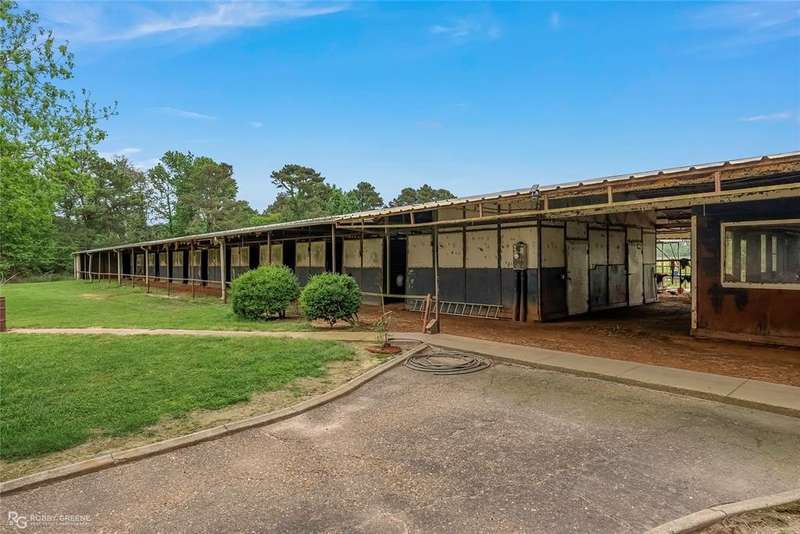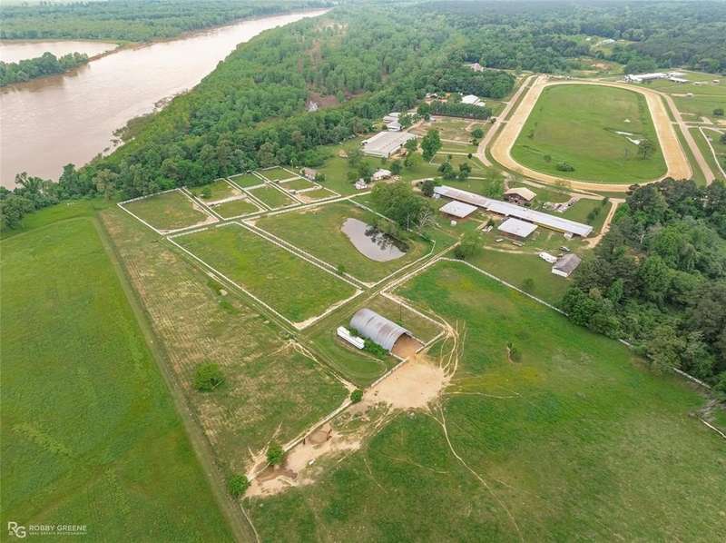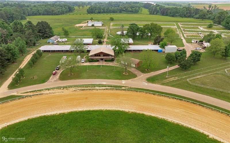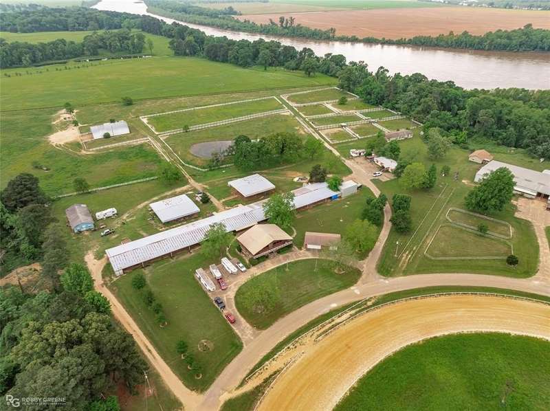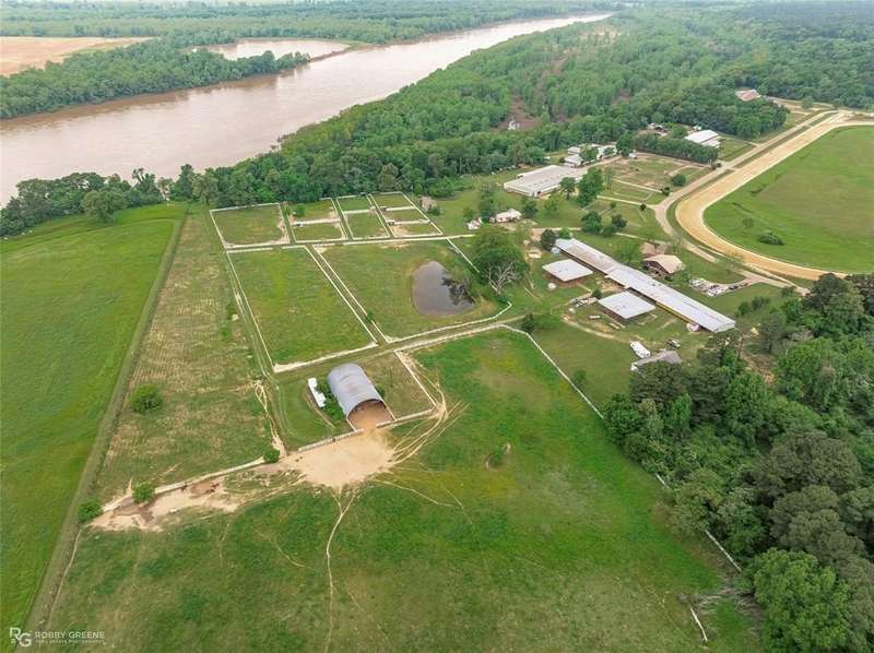 Welcome to Hurricane Bluff Equine Center – a rare opportunity to own a turnkey, working horse farm nestled on 28.5 acres of high-bank riverfront in beautiful Benton, Louisiana. This premier training and breeding facility is ideal for racehorse owners, trainers, or breeders looking for a well-established setup in a prime location. The main residence is a charming 3-bedroom, 2.5-bath home featuring a spacious upstairs balcony complete with a built-in bar and breathtaking views overlooking the professionally maintained training track — the perfect place to relax and watch morning workouts or entertain guests. Equestrian amenities include: A massive 44-stall barn equipped with a tack room, kitchen, and designated foaling stalls Two covered walking wheels for safe and efficient conditioning A 7-room bunkhouse to accommodate staff or guests Large hay barn and a rented double-wide trailer for additional income potential This facility was designed with serious horsemen in mind. Whether you’re conditioning Thoroughbreds or Quarter Horses, the track is tailored for peak performance and maintained with equine athletes in mind. The location offers unbeatable convenience for racing across the state — just a short haul to Delta Downs (Vinton, LA), Fair Grounds (New Orleans), and Louisiana Downs (Shreveport, LA). It’s also ideally situated just 3 hours from Oaklawn Park in Hot Springs, AR, and Lone Star Park in Dallas, TX. All farm movables, including tractors, horse trailers, and equipment, are negotiable and will be sold separately from the real estate. Horses and stock are also available outside of the land sale, offering a complete package for a new owner wanting to step into a fully operational equine enterprise. Don’t miss this incredible opportunity to own a fully functional horse farm in the heart of Louisiana racing country seller is motivated!