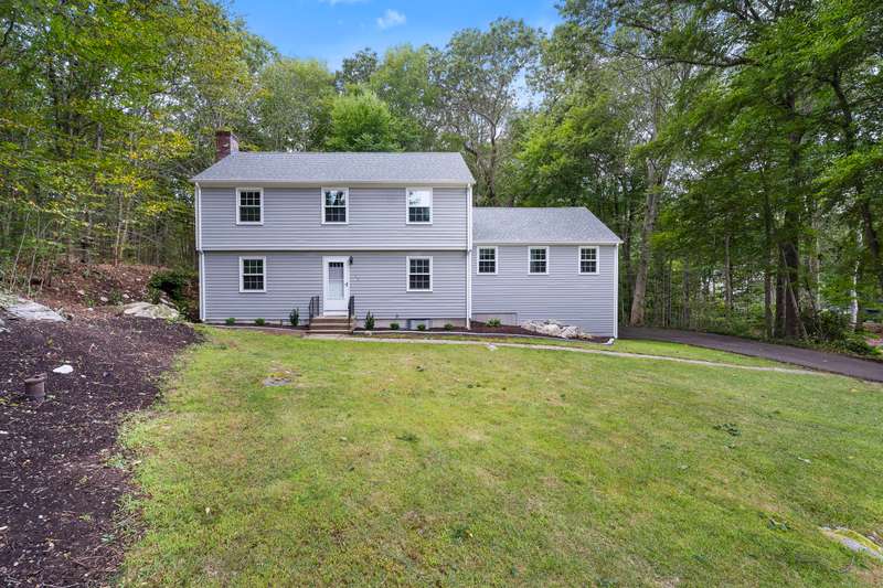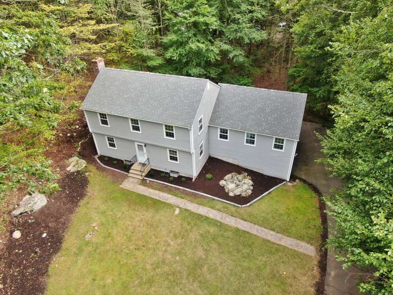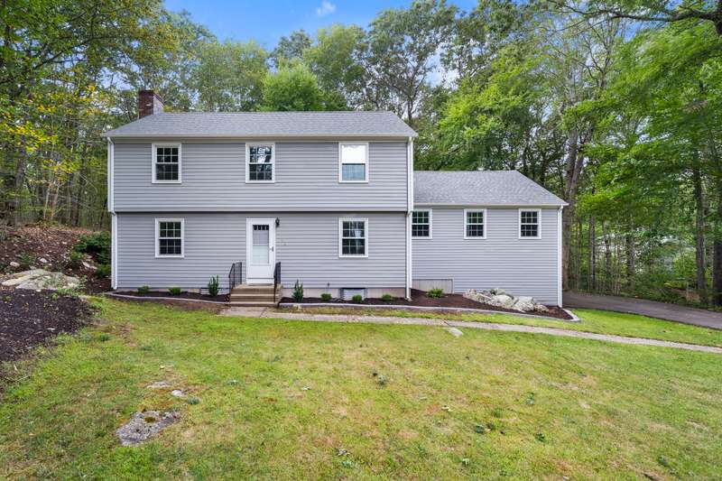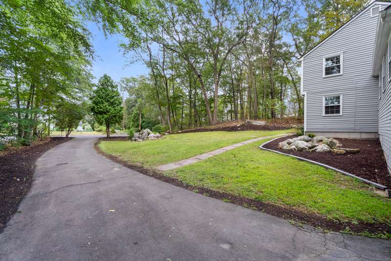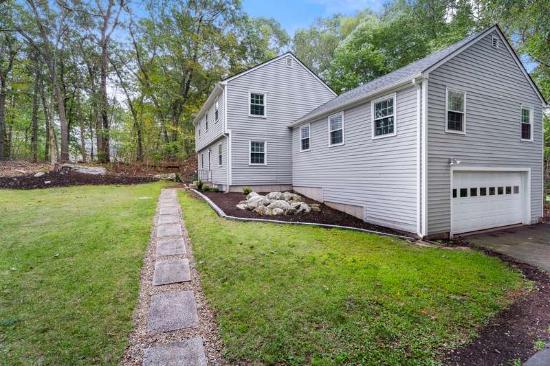 Available NOW on rarely traded Nutmeg Lane! Privately situated at the end of a cul-de-sac on just about one full acre prefect for walking and biking, this brilliant Colonial awaits its new owners. Instead of some minor updates, this one received all of the important ones... Brand New Roof, ALL new windows throughout, a fresh exterior paint job, new seamless gutters, new garage door. Inside, a full paint job, stunning re-finished hardwood floors, new tile floor entrance, custom kitchen backsplash, landscaping, new appliances, and granite countertops. Enjoy the windfall of the potential in-law/primary wing complete with full bath, laundry area w/ new vinyl flooring, and 24'x15' space w/ vaulted ceilings and tons of natural light; think a lagniappe bedroom possibility! Upstairs are three bedrooms, and one Primary BR suite (remodeled) and large walk in closet. The second BR also offers another walk in closet, and the hardwoods are tremendous throughout too! A practical covered deck off the
