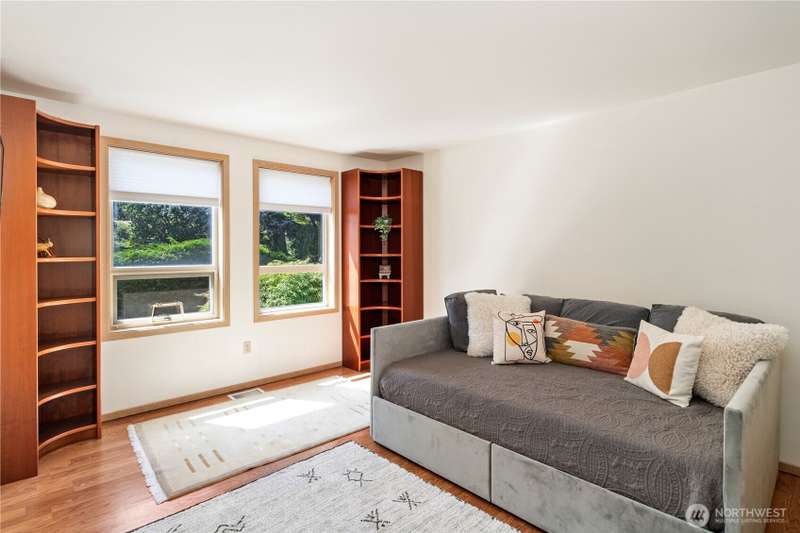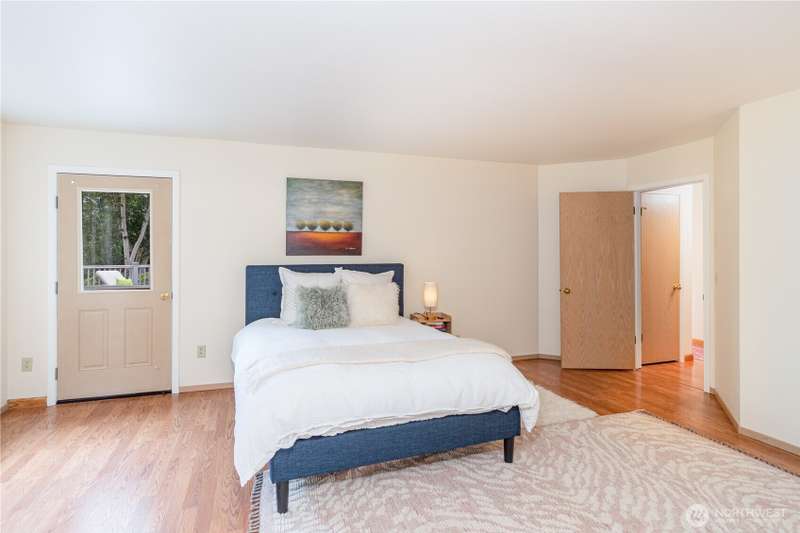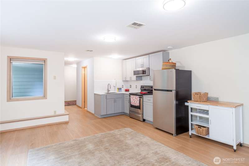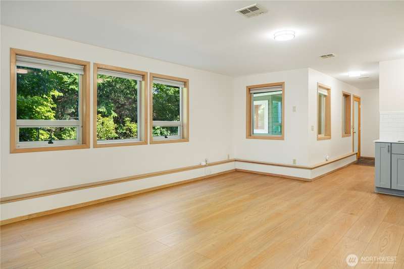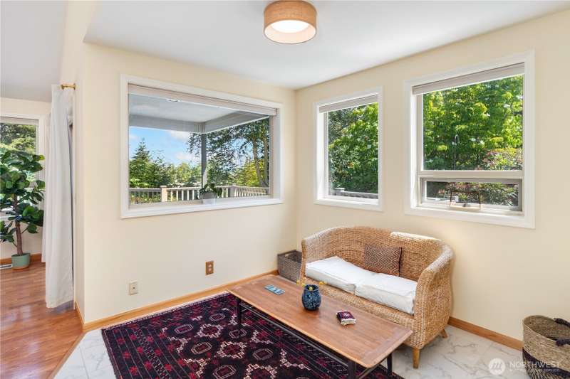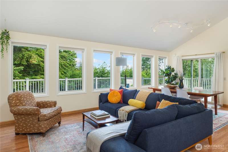 MOTIVATED SELLER! Views, light, and privacy are yours with this lovely contemporary home on a large lot in Port Townsend. Sip your morning coffee on the covered deck, overlooking beautiful rhododendrons. The main floor boasts vaulted ceilings, a living room with a wall of windows, and a master bedroom with a walk-in closet. The downstairs ADU has been soundproofed, has its own entrance, a kitchen, a bedroom, and a bathroom. Fenced backyard, RV parking. Ramps to the front door and deck for easy access. The home features a dual comfort/zone heat pump, a new hybrid water heater, 220V in the garage, and a separate laundry room for the ADU. With two units to rent, it could also be a great investment.
