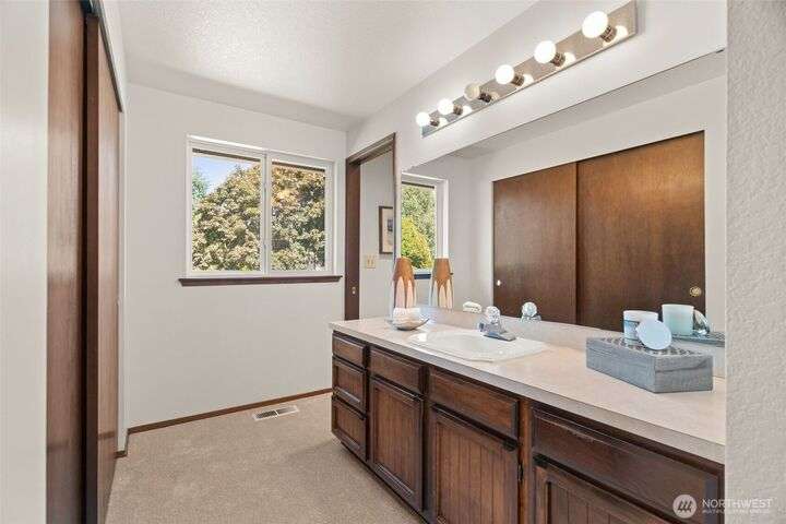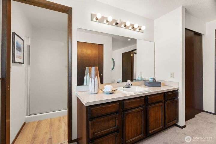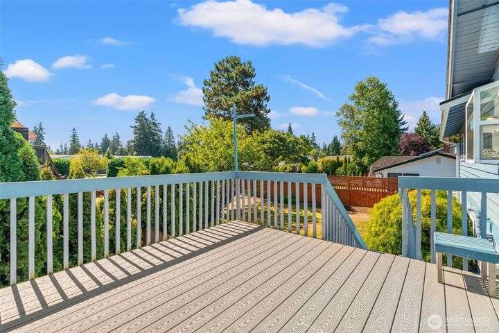 First time on the market in over 30 years! This well-maintained home in the desirable Woodway Meadows neighborhood offers light-filled living spaces, a welcoming living room with fireplace and vaulted ceilings, and a dining area that flows to the deck - perfect for entertaining. The kitchen and primary bedroom with en-suite bath are conveniently located on the main level. The lower level features a spacious family room with fireplace, additional bedroom plus 3/4 bath, and access to the fenced backyard. Two-car garage. Across from Hickman Park, close schools and local amenities. Minutes to Downtown Edmonds for shopping, dining and more!