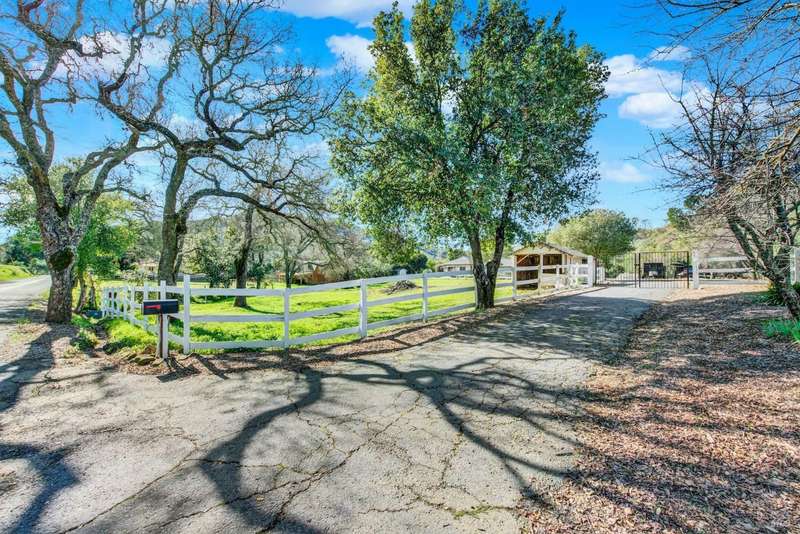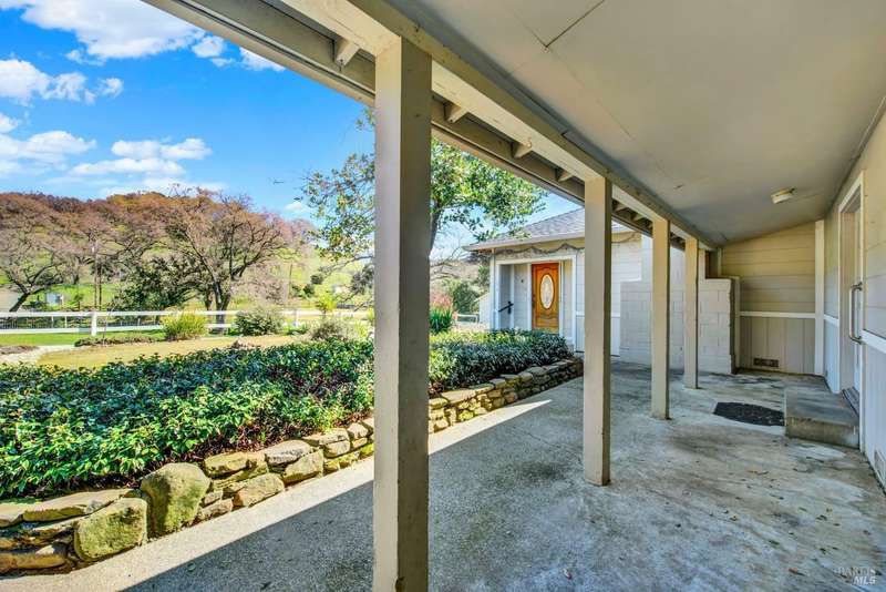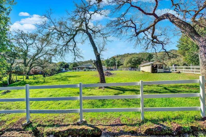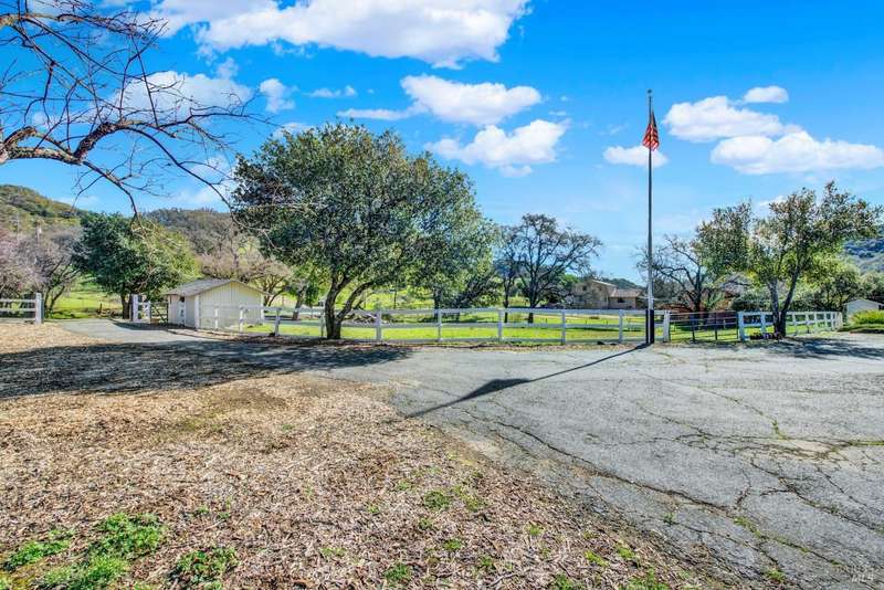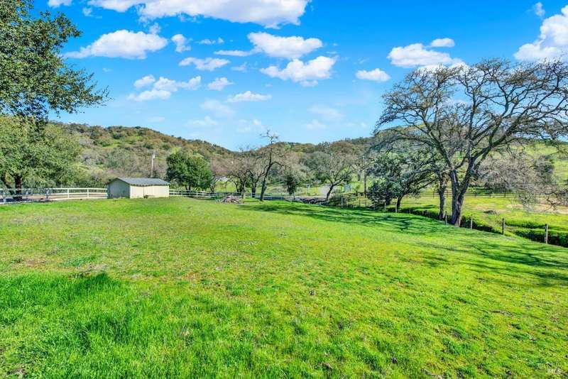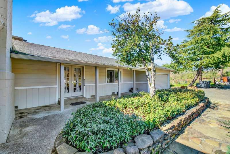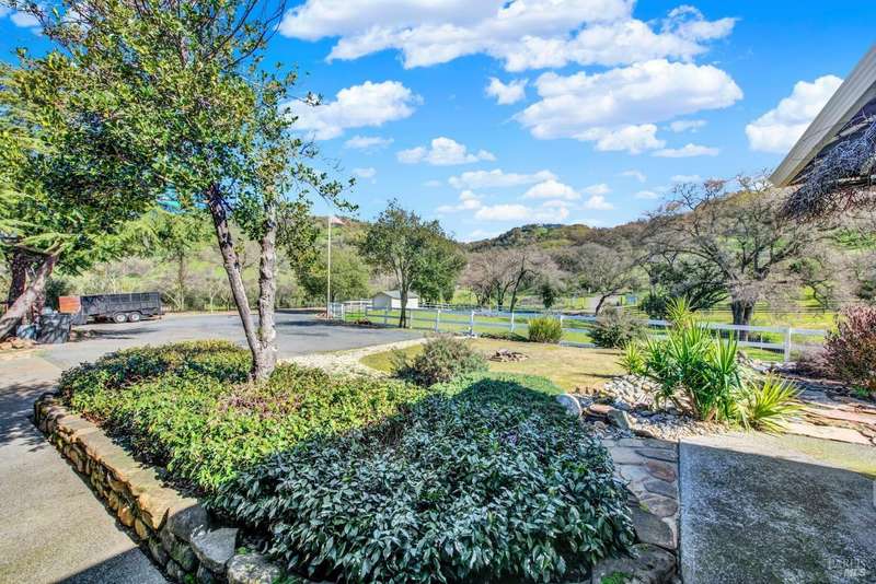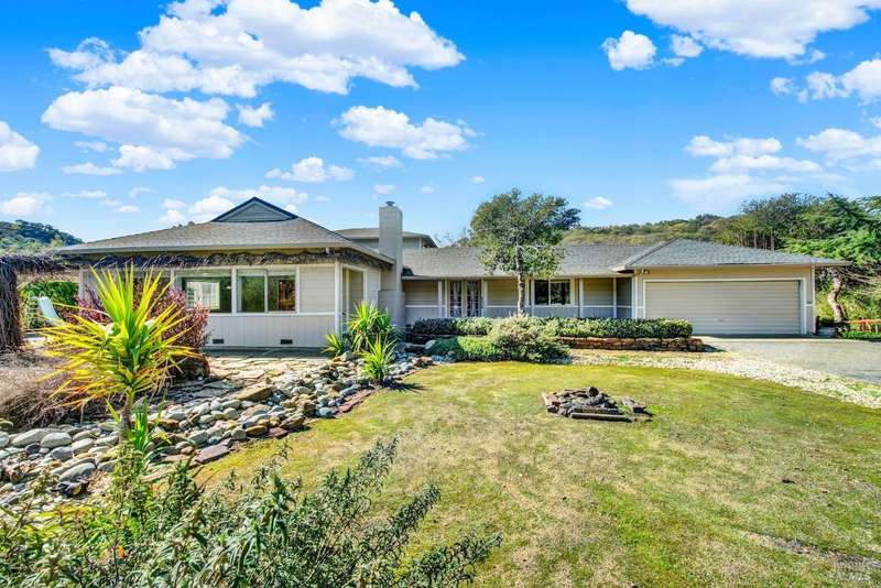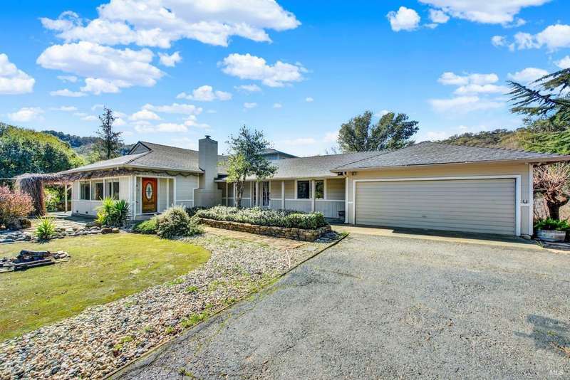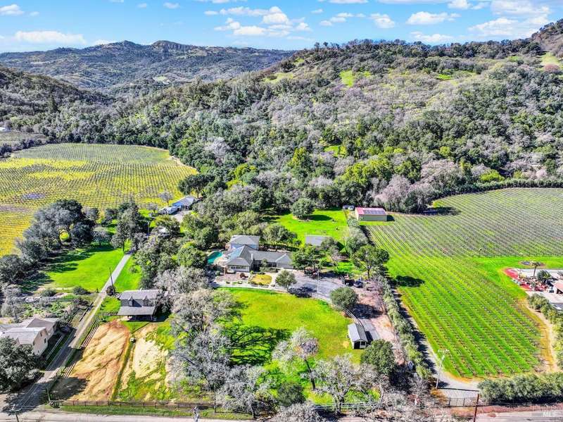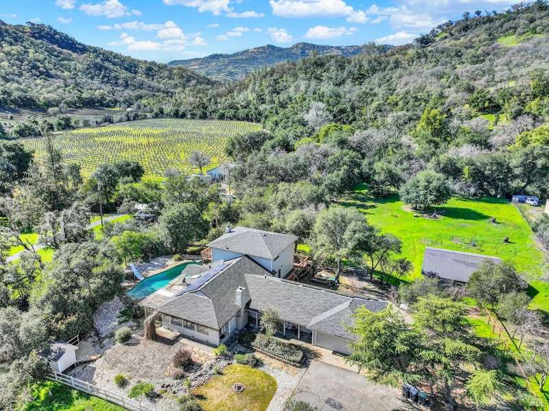 Escape to this beautiful country retreat! Nestled on 3 acres of serene land, this spacious 7-bedroom, 3-bath home offers incredible privacy with room to roam. New carpet throughout. Enjoy stunning hillside views and the peaceful ambiance of a seasonal creek, along with the charm of a 6-bay barn. The home features separate living and family rooms, ideal for large families or those who love to entertain. Plus, with a built-in swimming pool complete with a slide, you'll have endless summer fun. Located just 10 miles from town, you'll have easy access to local amenities, yet still enjoy the peace and quiet of a dead-end road. The nearby wineries, including Caymus and Wooden Valley, make this an ideal location for wine lovers. With leased solar panels to help keep energy costs low, this property offers both comfort and sustainability.